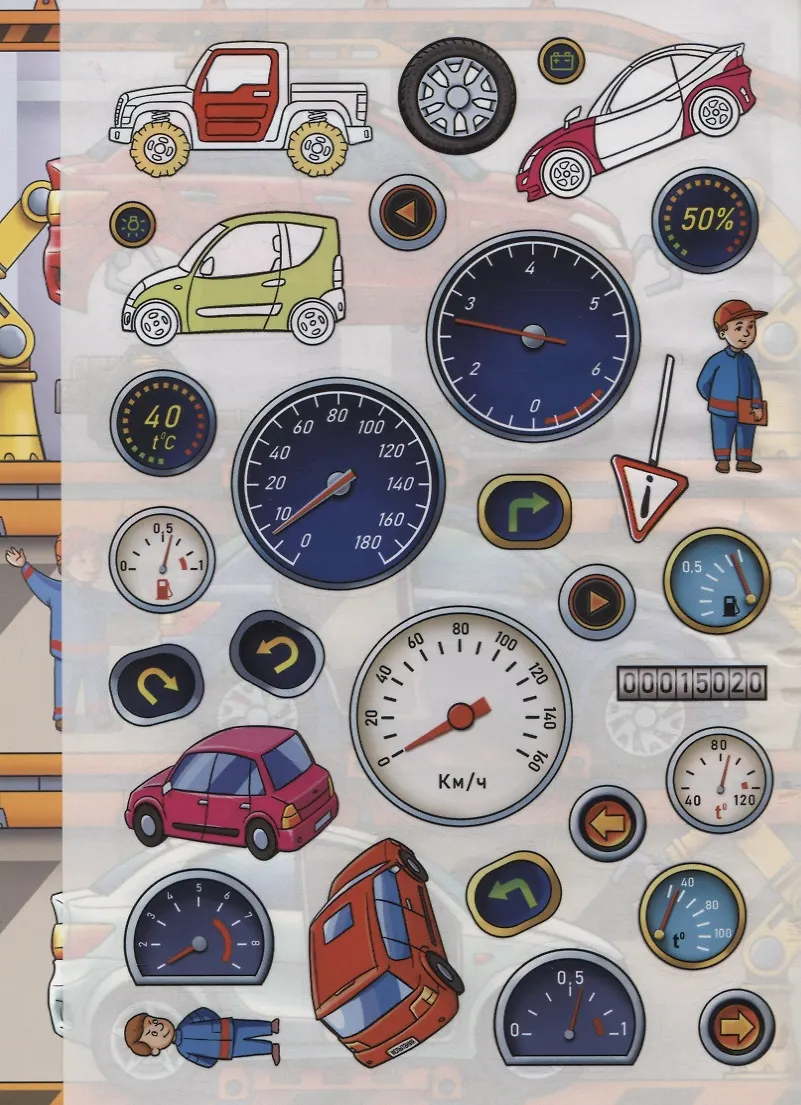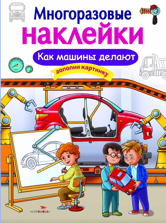 Какие специалисты трудятся над созданием машин? Как устроена приборная панель? Что такое испытательный полигон для автомобилей? Играя с этой книжкой, ваш малыш узнает ответы на эти и другие вопросы о машинах. А многоразовые наклейки сделают игру ещё увлекательнее!