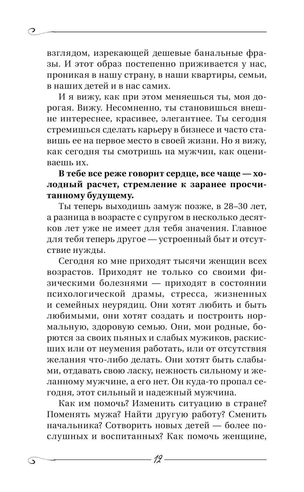 Большое внимание в книге уделено психологическому благополучию женщины и важнейшим составляющим ее счастья.