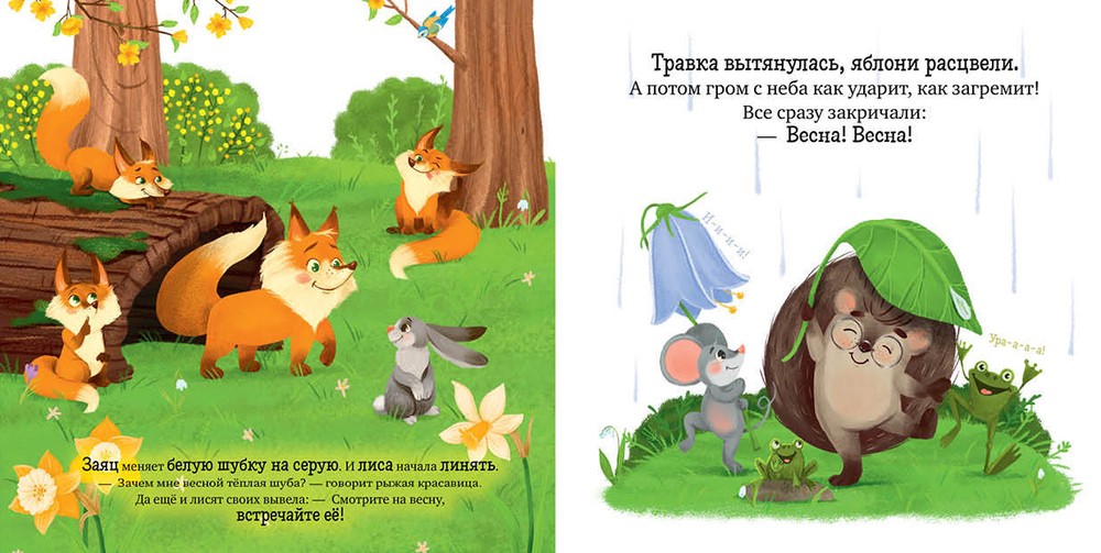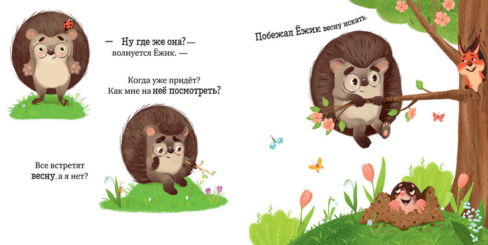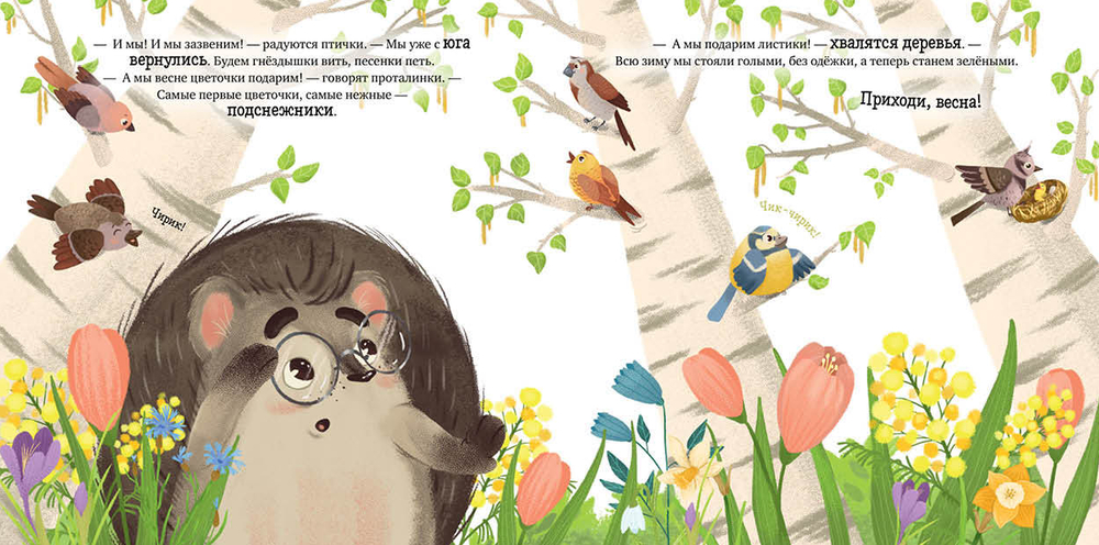 Ежик-метеоролог – очаровательный малыш, который знакомится с окружающим миром. Проснувшись после зимнего сна, он узнаёт, что наступила весна. Все звери и птицы радуются ее приходу. Только Ежик никак не может ее найти. Получится ли встретить весну у нашего героя? Невероятно трогательная история от непревзойденного мастера сказок Елены Ульевой подарит вам тепло, уют и незабываемое время с малышом.