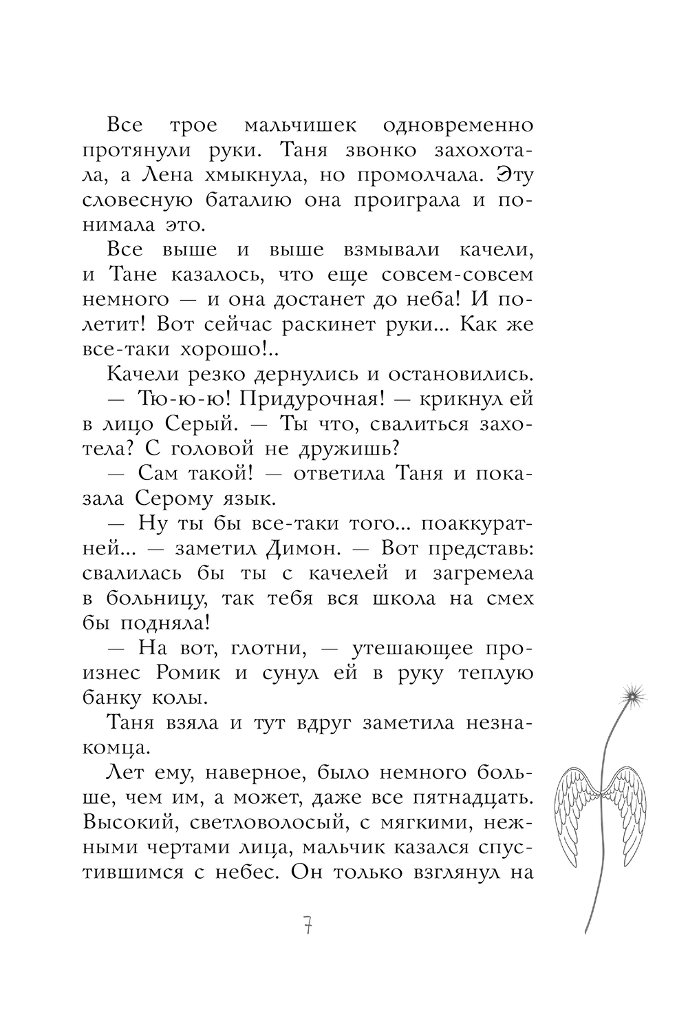 Впоследствии оказывается, что он далеко не ботан и чисто физически способен дать отпор вожаку. Не юноша, а ангел! Таня влюб ляется. Но можно ли построить отношения с ангелом?..