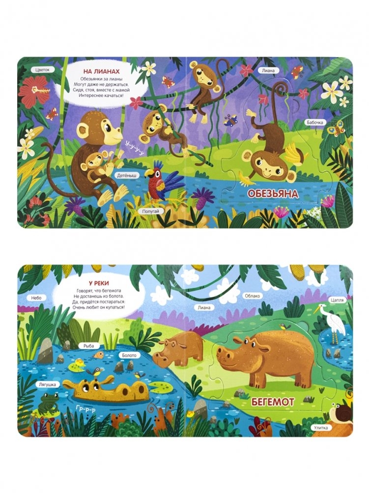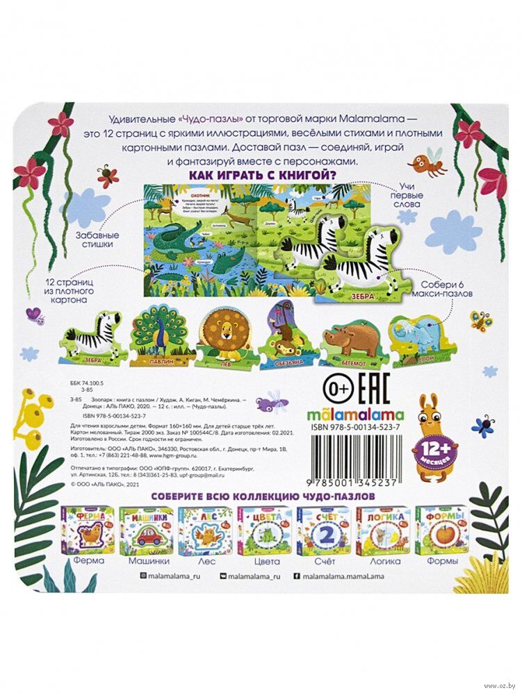 "Чудо-пазлы. Зоопарк" – это занимательная книжка с пазлами, на 12 страницах которой находятся весёлые стихи и 6 крупных пазлов. Ребёнок сможет легко извлечь такие пазлы, соединить их между собой и собрать "паровозик", перемещая фигурки по своему усмотрению. Яркая и контрастная печать делает картинки максимально насыщенными. Страницы изготовлены из качественного и плотного картона.