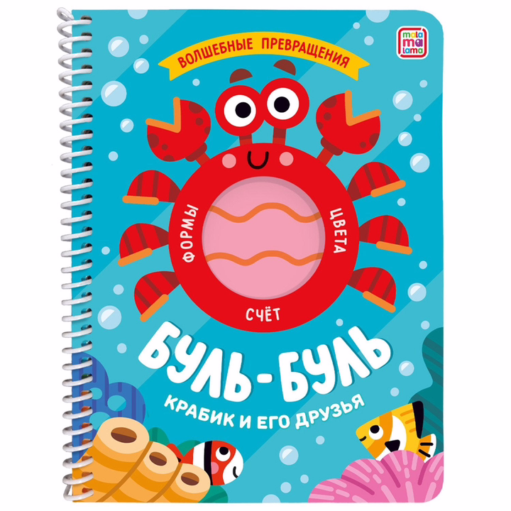 Книжка "Буль-буль. Крабик и его друзья" из серии "Волшебные превращения" поможет самым маленьким почемучкам выучить первые цифры, научиться простому счёту, определять цвета и формы. Яркие и удивительные жители подводного мира будут сопровождать малыша на каждой странице, мотивируя листать книгу и выполнять простые задания.