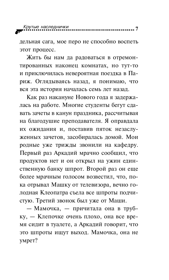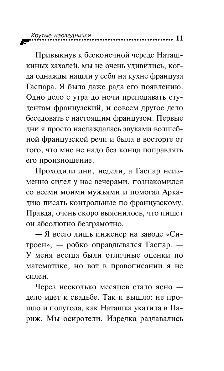 Бывают же на свете чудеса! Наташа – бывшая скромная лаборантка – оказывается хозяйкой богатейшего имения под Парижем. Ее муж, погибший в автокатастрофе, оставил после себя колоссальное наследство. И, разумеется, над лакомой добычей начинают кружить хищники. Тут и подозрительный дамский угодник Аллан, и не менее подозрительная некая Андре, и Жаклин – бесшабашная дочь разбогатевшей русской эмигрантки. Трудно уцелеть в стае этих акул. Но Наташа не намерена сдаваться, тем более ее лучшая подруга Даша готова разделить с ней все опасности этой нешуточной схватки...