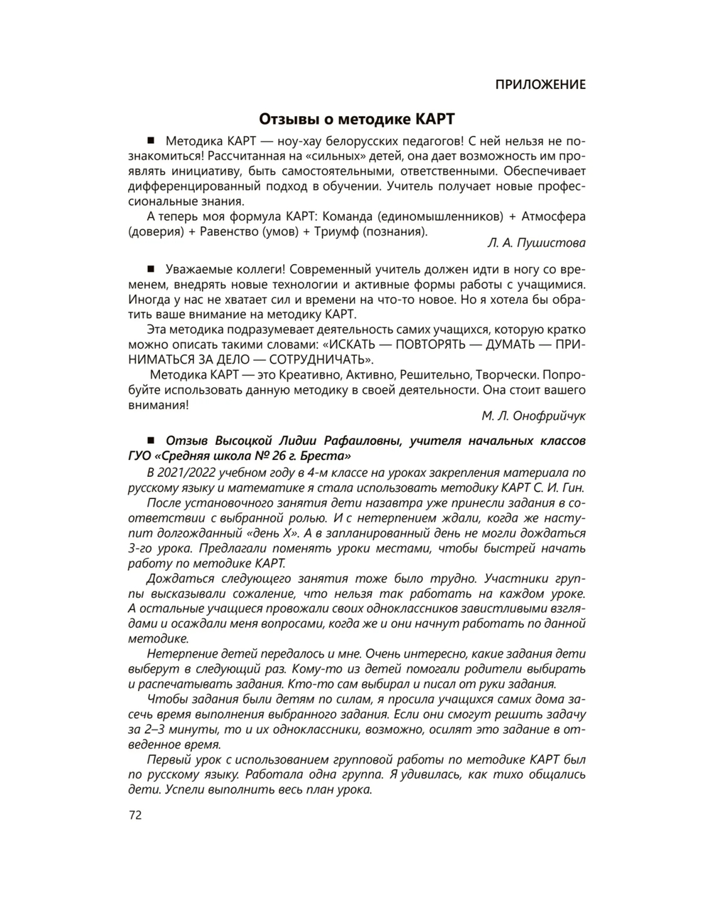Данное пособие способствует приобретению знаний и умений по использованию авторской методики КАРТ в процессе обучения. Предлагаемая методика направлена на повышение уровня эффективности групповой работы на уроке, содействует формированию учебной самостоятельности и реализации интеллектуального и личностного потенциала высокомотивированных учащихся, обеспечивает достижение личностных, метапредметных и предметных результатов обучения.
