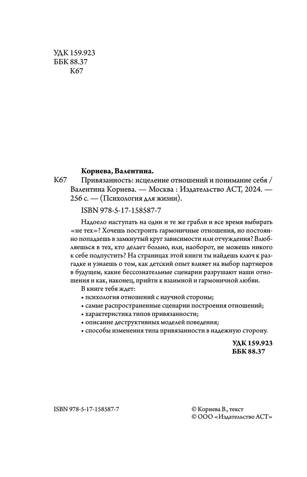 Надоело наступать на одни и те же грабли и все время выбирать "не тех"? Хочешь построить гармоничные отношения, но постоянно попадаешь в замкнутый круг зависимости или отчуждения? Влюбляешься в тех, кто делает больно, или, наоборот, не можешь никого к себе подпустить? На страницах этой книги ты найдешь ключ к разгадке и узнаешь о том, как детский опыт влияет на выбор партнеров в будущем, какие бессознательные сценарии разрушают наши отношения и как, наконец, прийти к взаимной и гармоничной любви.
