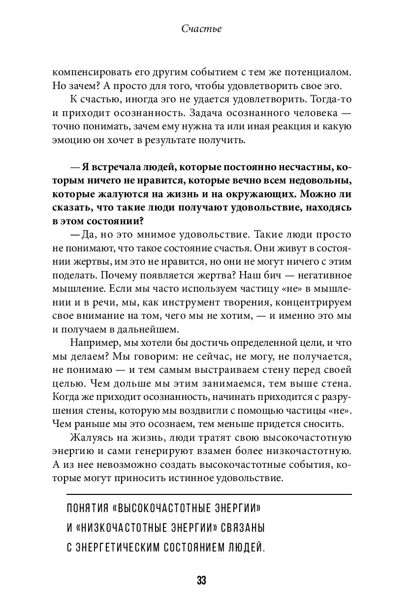 Книга преподносится в форме интервью с профессиональным психологом Еленой Дока. Вас ждет диалог с автором, который осветит 19 тем, значимых для переосмысления ваших взглядов на любовь, счастье, энергию, удовольствие, стресс и многое другое.