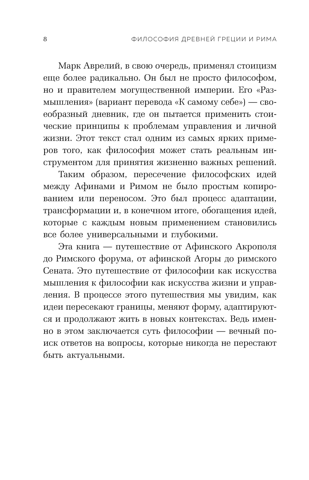 Античная философия лежит в основе современного интеллектуального и культурного наследия. Понимание идей и принципов великих мыслителей прошлого помогает не только познать современный мир, но и находить ответы на важные вопросы. Читая данное издание, вы обнаружите неожиданные параллели между древними концепциями и современными проблемами, а также получите ключи к глубоким философским размышлениям.