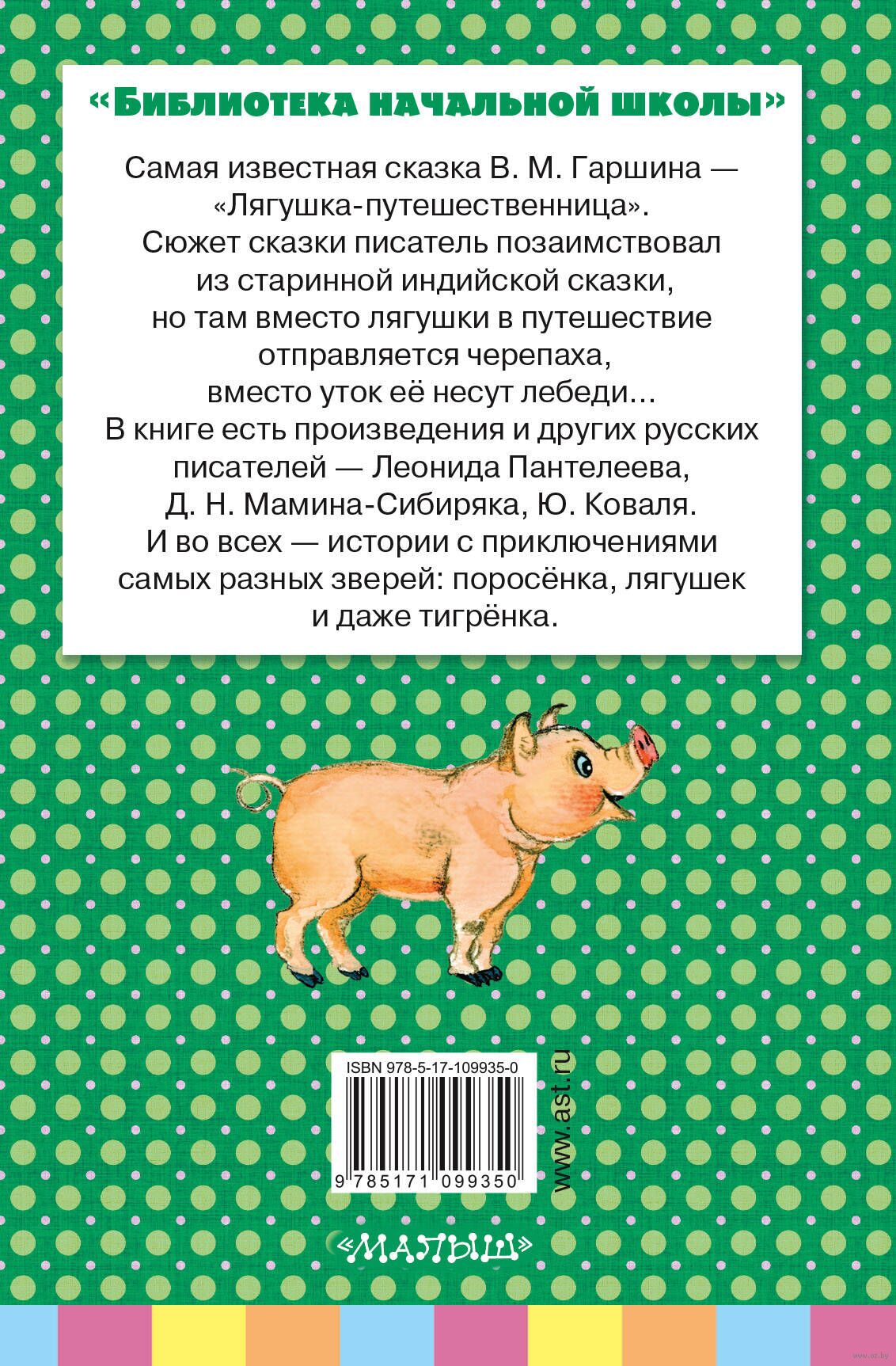 В книгу "Лягушка-путешественница и другие сказки о животных" вошли замечательные произведения классических и современных писателей Леонида Пантелеева, В.М. Гаршина, Д.Н. Мамина-Сибиряка и Ю. Коваля. Читая сказки о животных, ребёнок познаёт мир природы, учится понимать поведение зверей и бережно относиться к ним. Произведения входят в программы чтения в начальной школе.