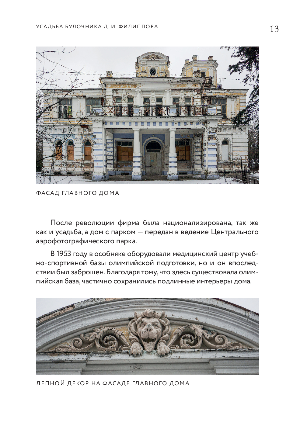 Заброшенные усадьбы Подмосковья – хранители непростой истории ушедших лет и поколений. Когда-то в этих домах кипела жизнь, приезжали Чехов, Тютчев, Карамзин и другие известные в нашей истории личности. Знаменитые композиторы и художники праздно проводили вечера, а поэты посвящали этим местам стихи. Сейчас усадьбы медленно разрушаются, но все еще сохраняют былую красоту. Автор книги проводит нас сквозь века, рассказывая старые легенды, истории семей и древних городов на примере таких усадеб, как Михайловское, Белые столбы, Любаново и др. Это издание познакомит вас с бытом тех времен, а фотографии покажут, что даже в руинах эти здания остаются прекрасными.