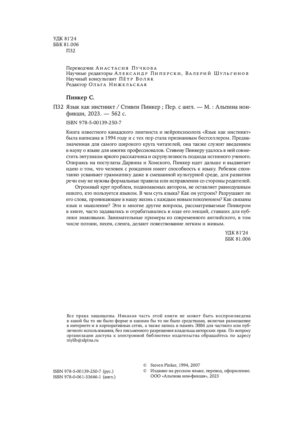 | Название в оригинале | The Language Instinct: How the Mind Creates Language |