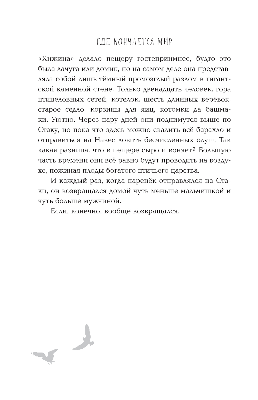 Брошенные, замерзшие и голодные мальчики выживают в холодных пещерах под крики покидающих скалу птиц, рассказывают друг другу истории, чтобы сохранить надежду и рассудок, и ищут ответа на один вопрос – почему же за ними никто не пришёл?