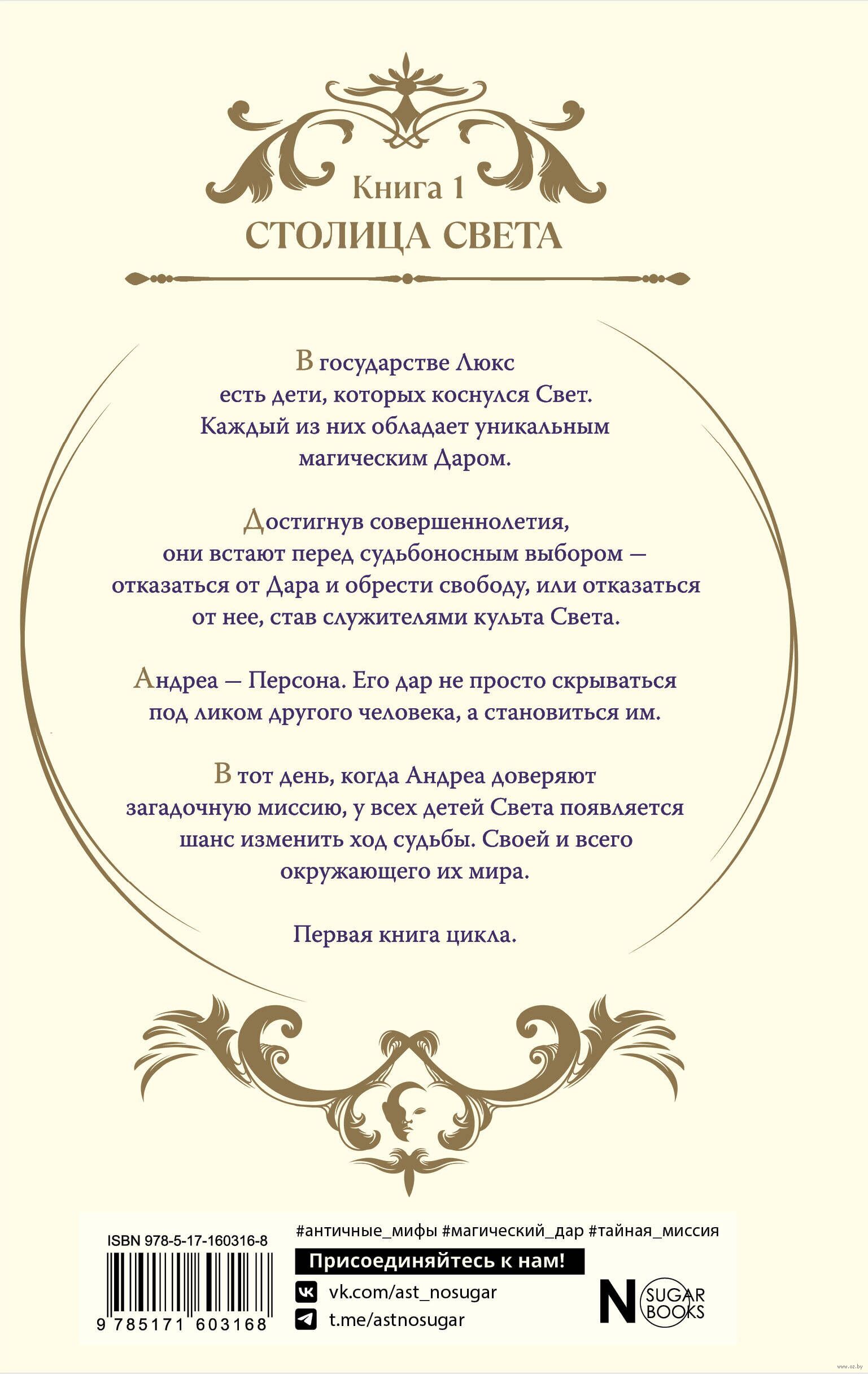 Андреа – Персона. Его дар не просто скрываться под ликом другого человека, а становиться им. В тот день, когда Андреа доверяют загадочную миссию, у всех детей Света появляется шанс изменить ход судьбы. Своей и всего окружающего их мира.