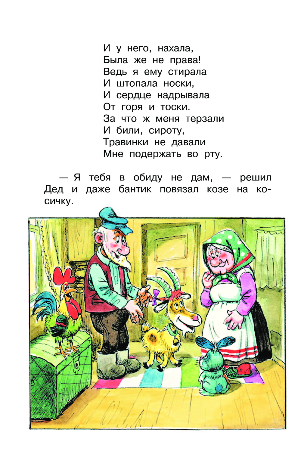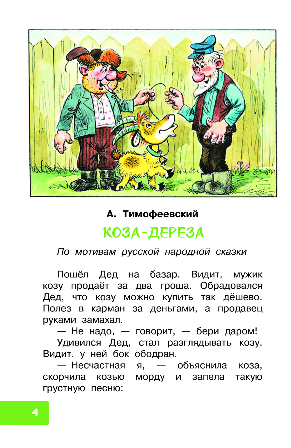 В сборник вошли три знаменитые сказки классиков детской книги: "Коза-дереза" А. Тимофеевского, "Петя и Красная Шапочка" В. Сутеева и "Вовка в Тридевятом царстве" В. Коростылёва. По этим сказкам в советское время были сняты замечательные мультфильмы. А мультипликтором был тот же художник, что нарисовал картинки и для этой книги, – Анатолий Михайлович Савченко. Его рисунки добрые, весёлые, а персонажи – всегда яркие, характерные. То, что нужно для настоящей детской книги.