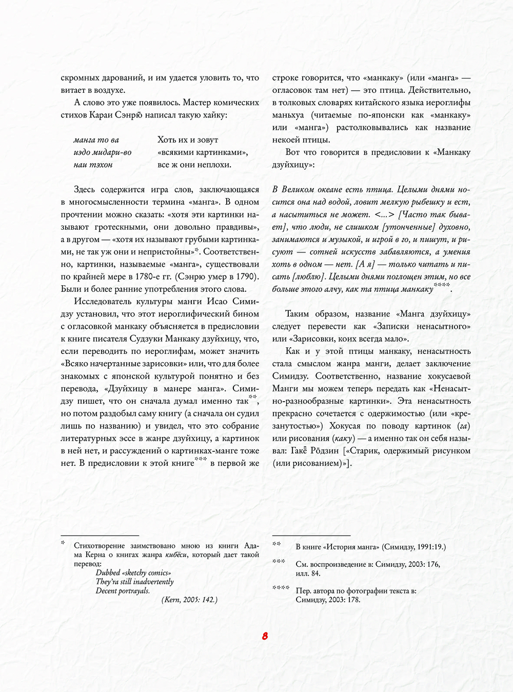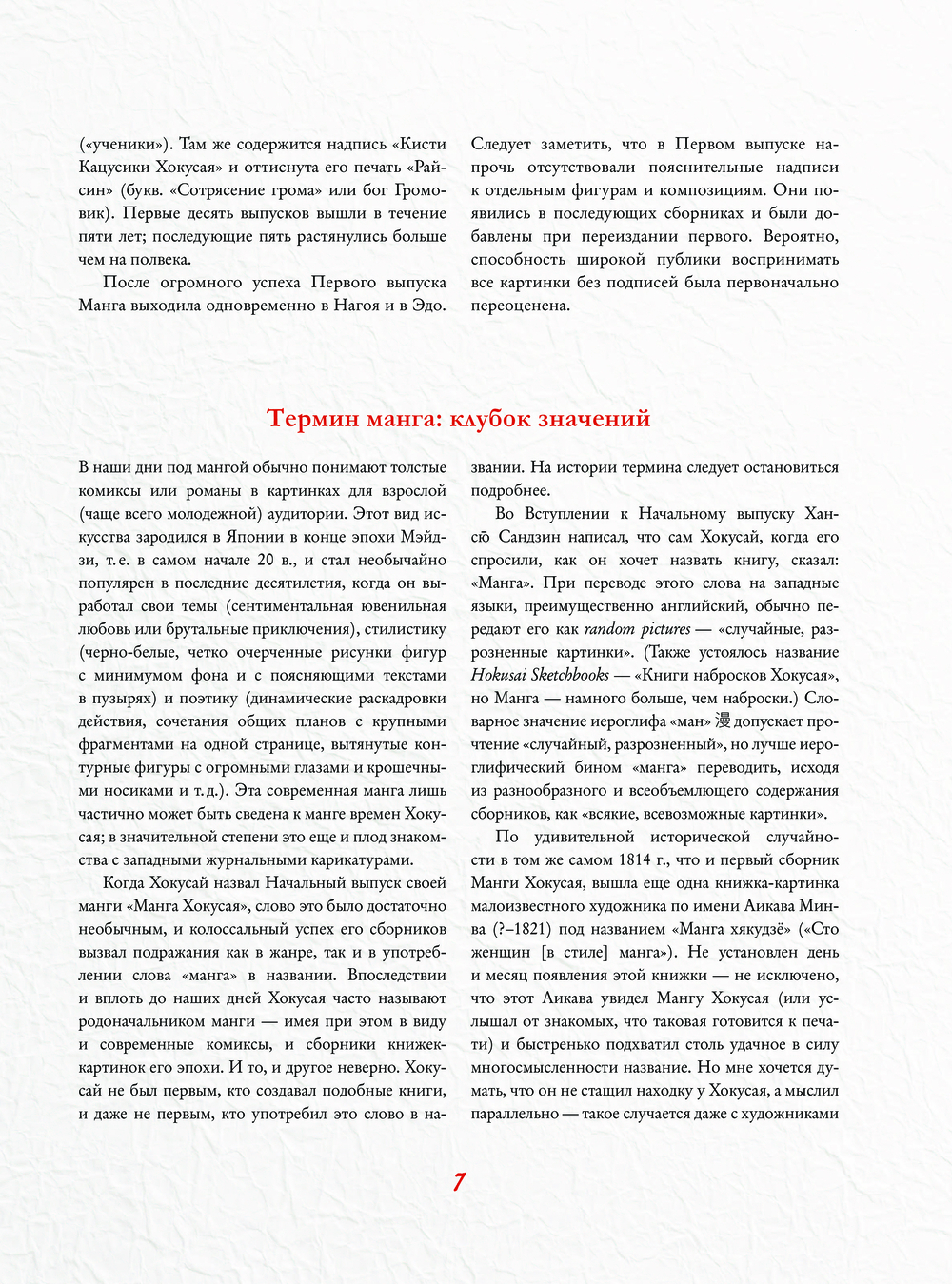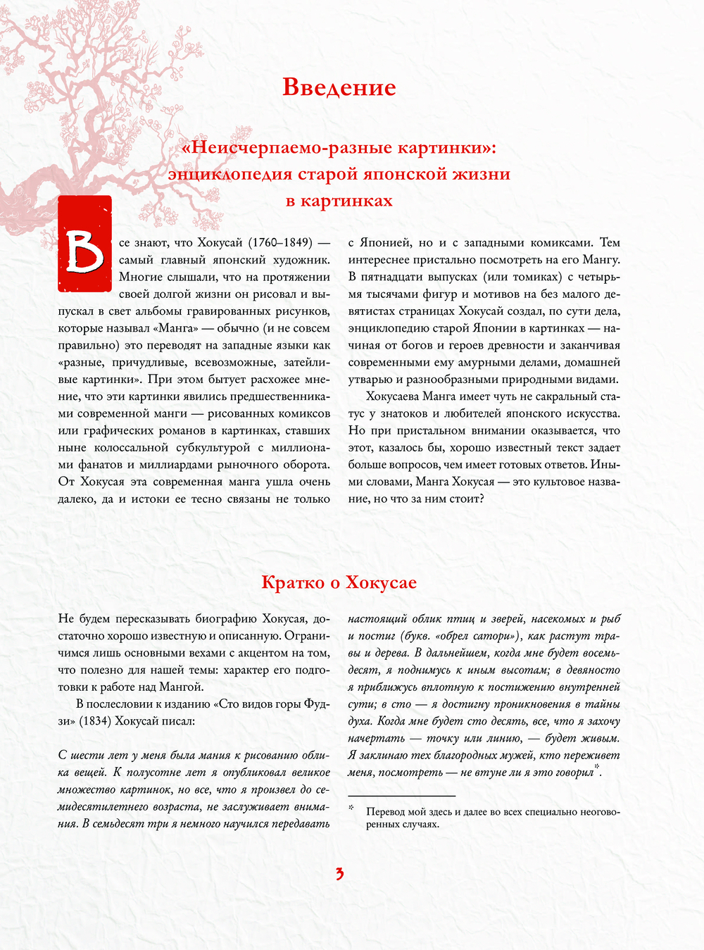 Автор убежден, что культурно-историческое пояснение во многих случаях совершенно необходимо. "Манга Хокусая", хоть и написана не иероглифами, а "рисуночным письмом", нуждается в переводе – с языка японских исторических и мифологических сюжетов, а также чужих культурных реалий двухсотлетней давности.