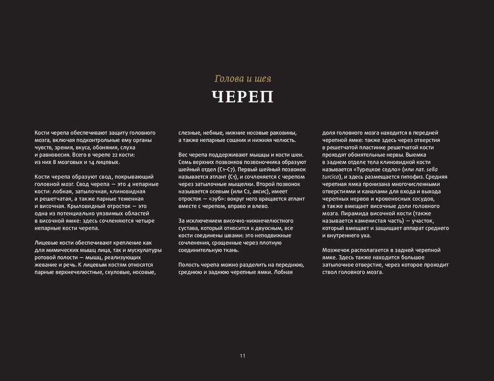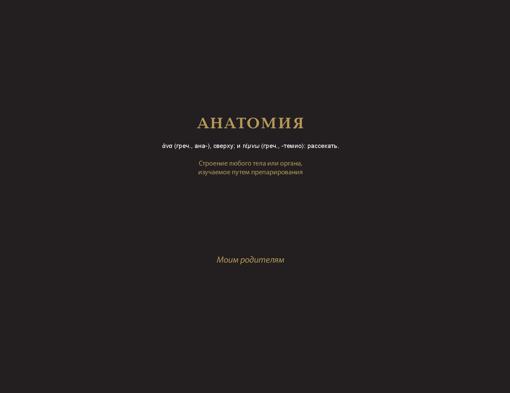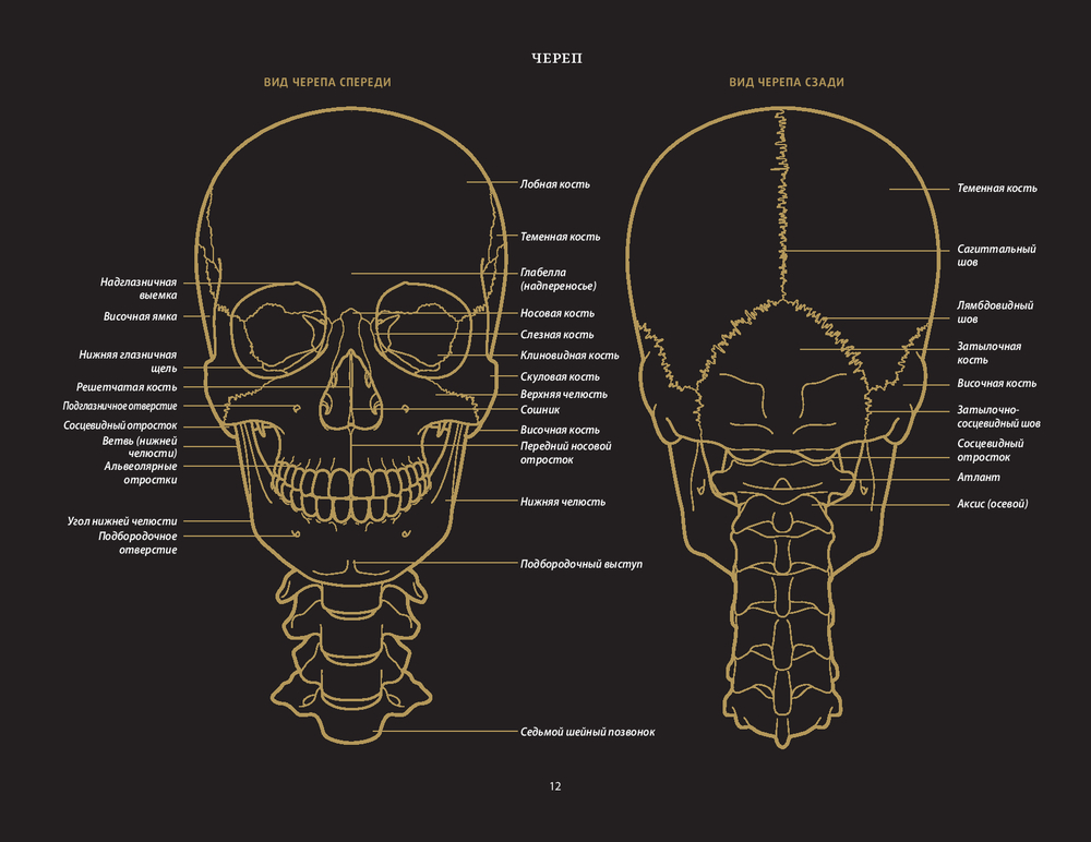 В данном издании собраны основные анатомические иллюстрации костей, мышц, внутренних органов человека. Каждая сопровождается подробными надписями. Необычное оформление – черные страницы и золотые иллюстрации – поможет читателям получить не только необходимые знания, но и эстетическое наслаждение.