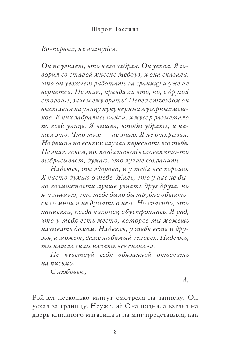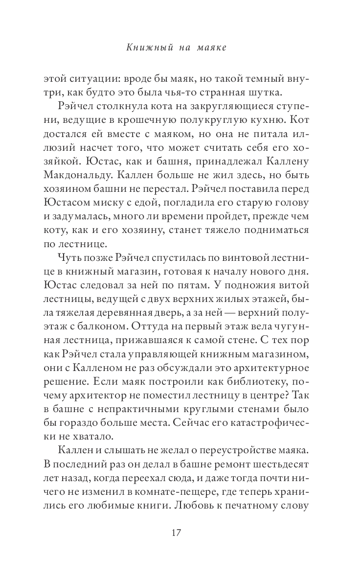 Сейчас в нем находится единственный на многие мили вокруг книжный магазин – центр притяжения для любителей чтения, уютной атмосферы, теплой беседы и хорошего кофе. Управляющая книжным и живущая на верхнем этаже маяка Рэйчел приехала сюда пять лет назад, сбежав от мужа-садиста и решив начать новую жизнь, – и обрела любимую работу и место, которое называет теперь своим домом.