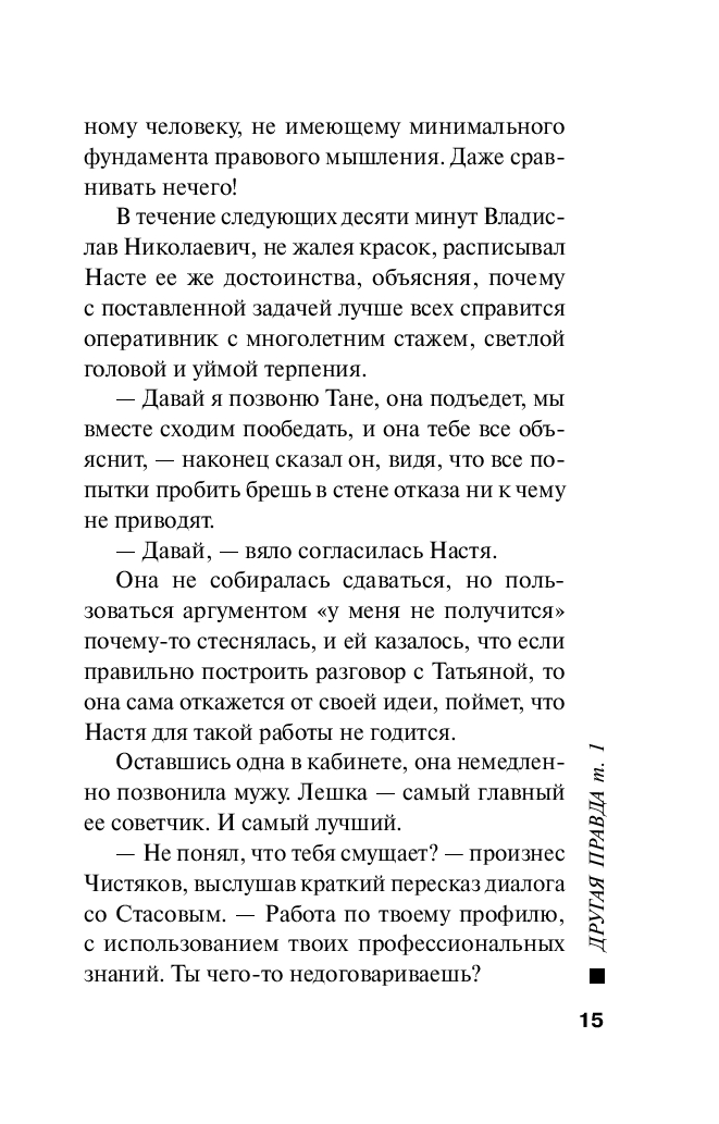 По прошествии двадцати лет старое уголовное дело попадает в руки легендарного оперативника в отставке Анастасии Каменской и молодого журналиста Петра Кравченко. Парень считает, что осужденного подставили, и стремится вывести следователей на чистую воду. Тут-то и выясняется, что каждый в этой истории движим своей правдой, порождающей, в свою очередь, тысячи видов лжи...