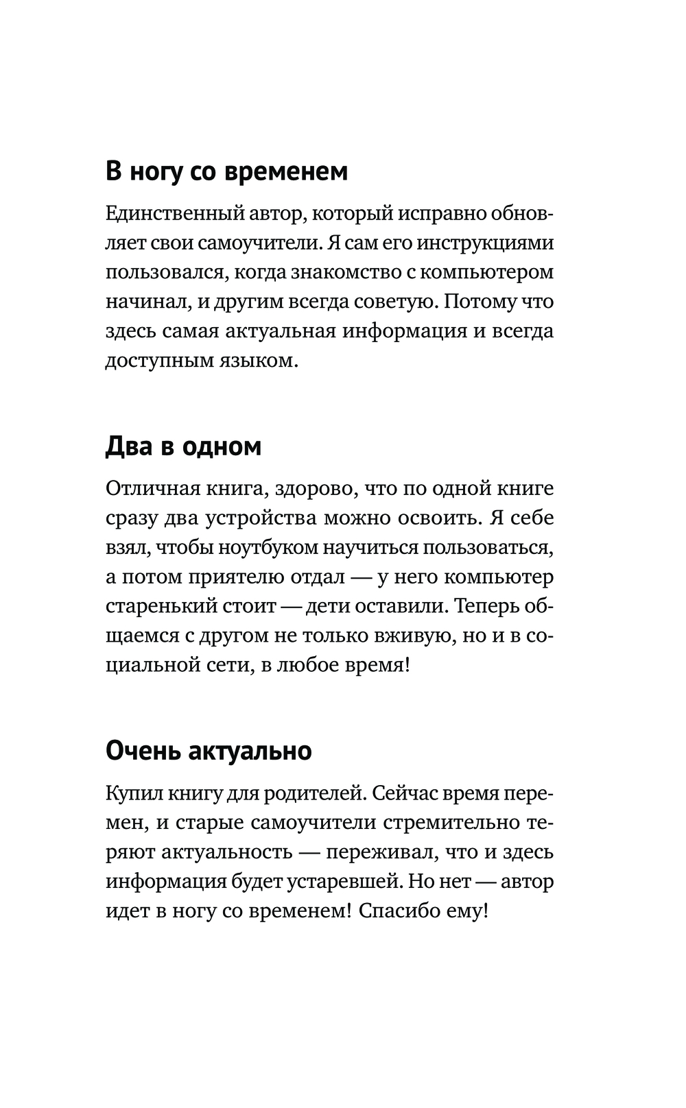 Начав с самых азов, к концу чтения вы сможете полноценно пользоваться любым из этих устройств, в том числе искать информацию в интернете, делать там покупки, смотреть фильмы и бесплатно общаться с любым человеком, где бы он ни находился.