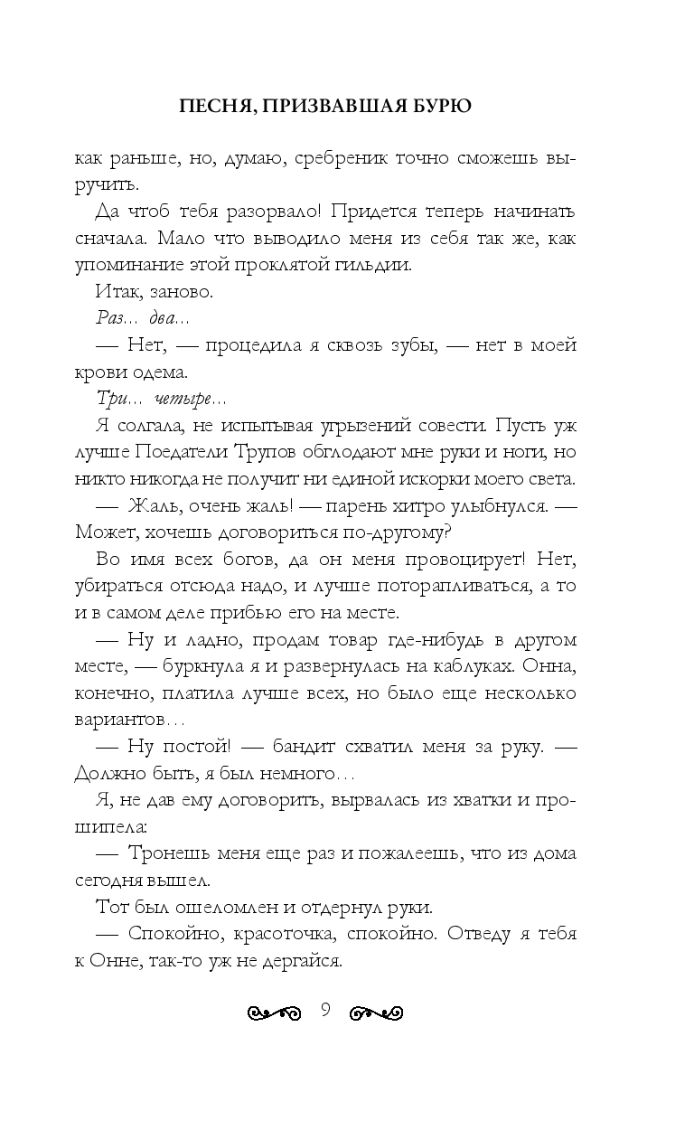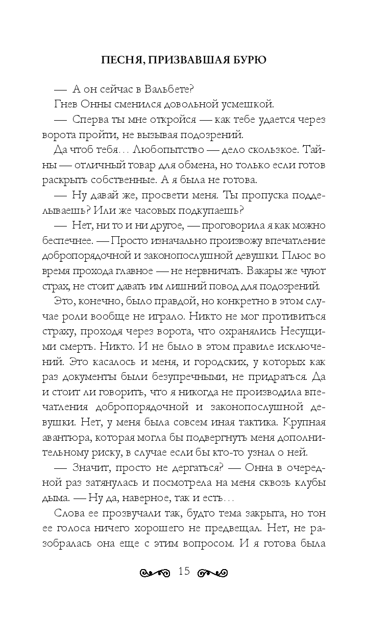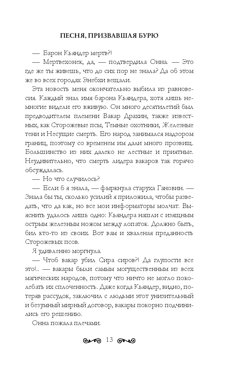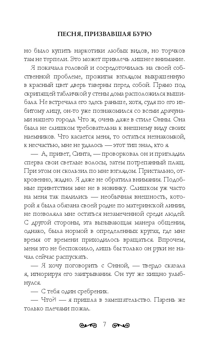 В страшную снежную бурю Синта ищет укрытие в ночлежке в мире людей, и с этого момента для нее все меняется. В маленькой глухой деревушке совершено убийство, а раскрыть преступление берет на себя сам Арезандер, харизматичный лидер вакаров, который сразу же замечает Синту. Во-первых, у девушки дар: она способна околдовать человека песней, а во-вторых, Синта по-настоящему прекрасна. Но рано или поздно вакары узнают: девушка – та, кто призвала бурю, и лишь она в ответе за то, что случилось...