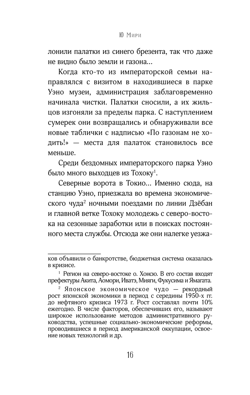 Здесь началась жизнь Кадзу в Токио в качестве чернорабочего в преддверии Олимпийских игр 1964 года, и здесь же он, шокированный цунами 2011 года и разгневанный объявлением Олимпийских игр 2020 года, закончил свои дни, живя в палатке в деревне для бездомных.