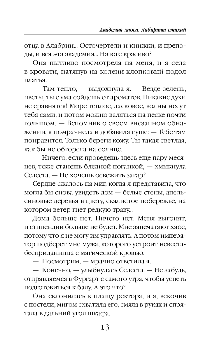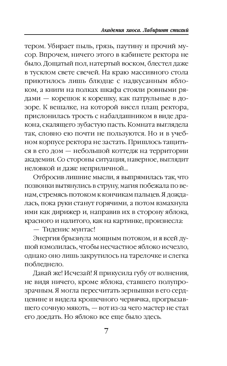 В моей крови проснулся хаос, и теперь я должна научиться им управлять или запечатать его навсегда. В академии своя атмосфера: преподаватели то ли учат, то ли калечат, по ночам в общежитии шастает призрак, а на горизонте видна стена, за которую меня отправят в патруль, – убивать тварей хаоса. После первого курса все студенты отправляются в лабиринт стихий, где хаос принимает одну из шести форм. Я не знаю, кем выйду из лабиринта и выйду ли из него вовсе, но как иначе понять, кто я такая?