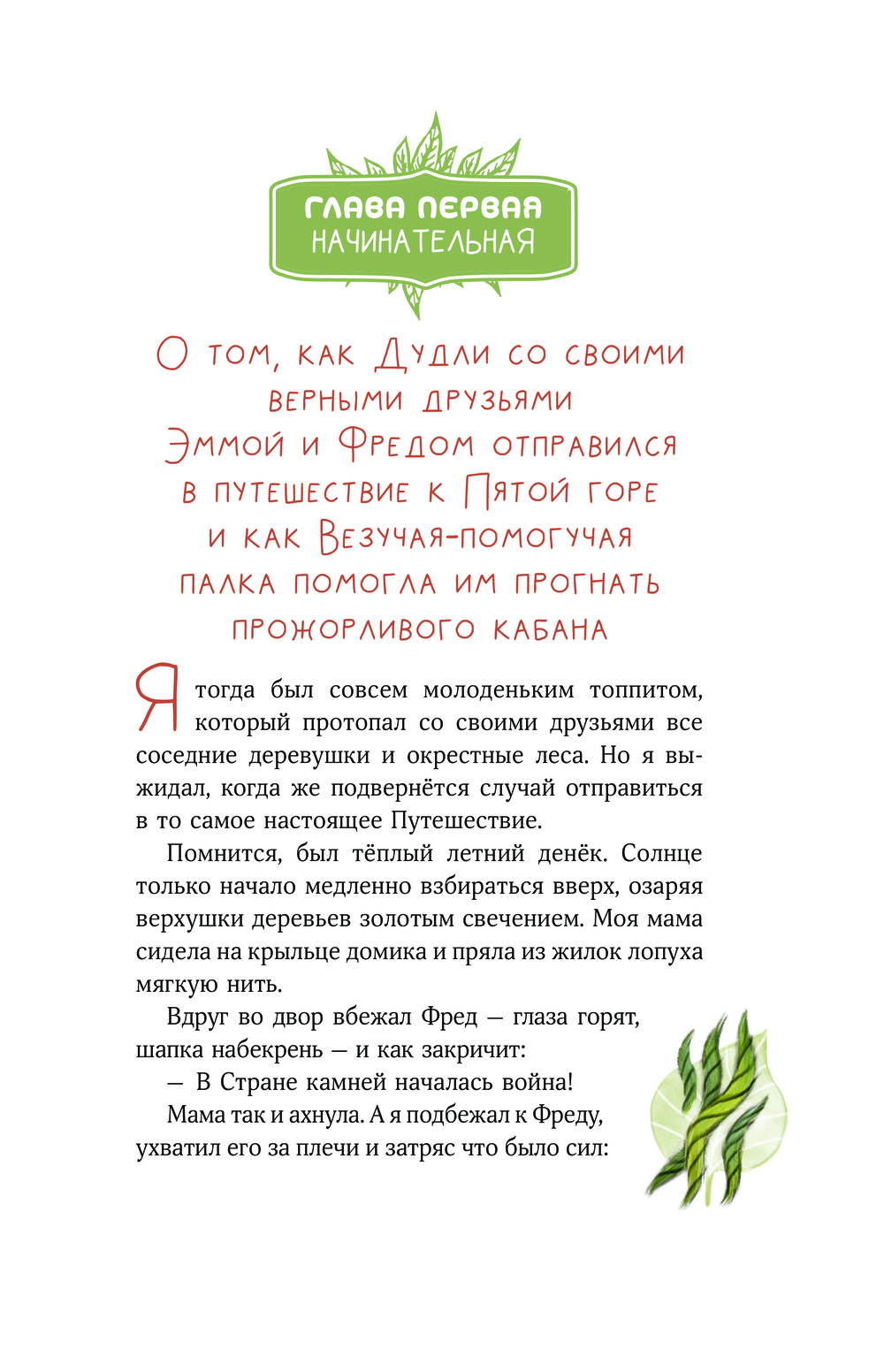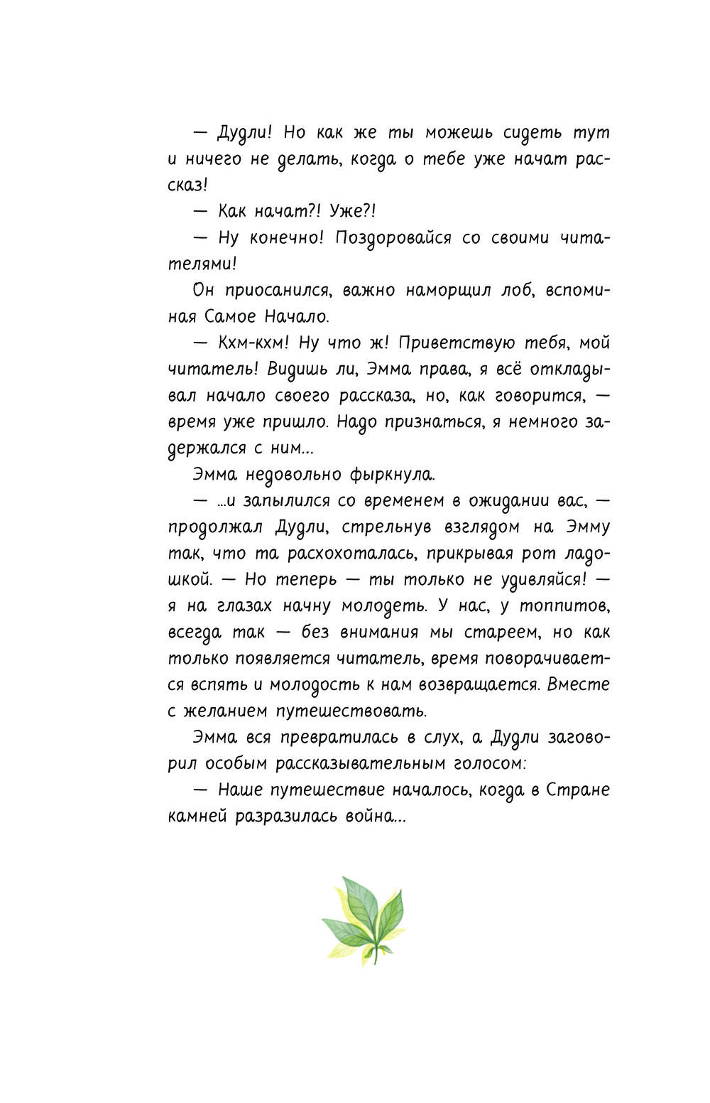 Ну а пока, маленький топпит Дудли начинает свой рассказ о том, как он и его лучшие друзья, Эмма и Фред, неожиданно отправились в страну Камней, а попали в волшебную Иони и даже чуть было не остались там навсегда. Интересно? Тогда скорее открывай книгу и слушай!