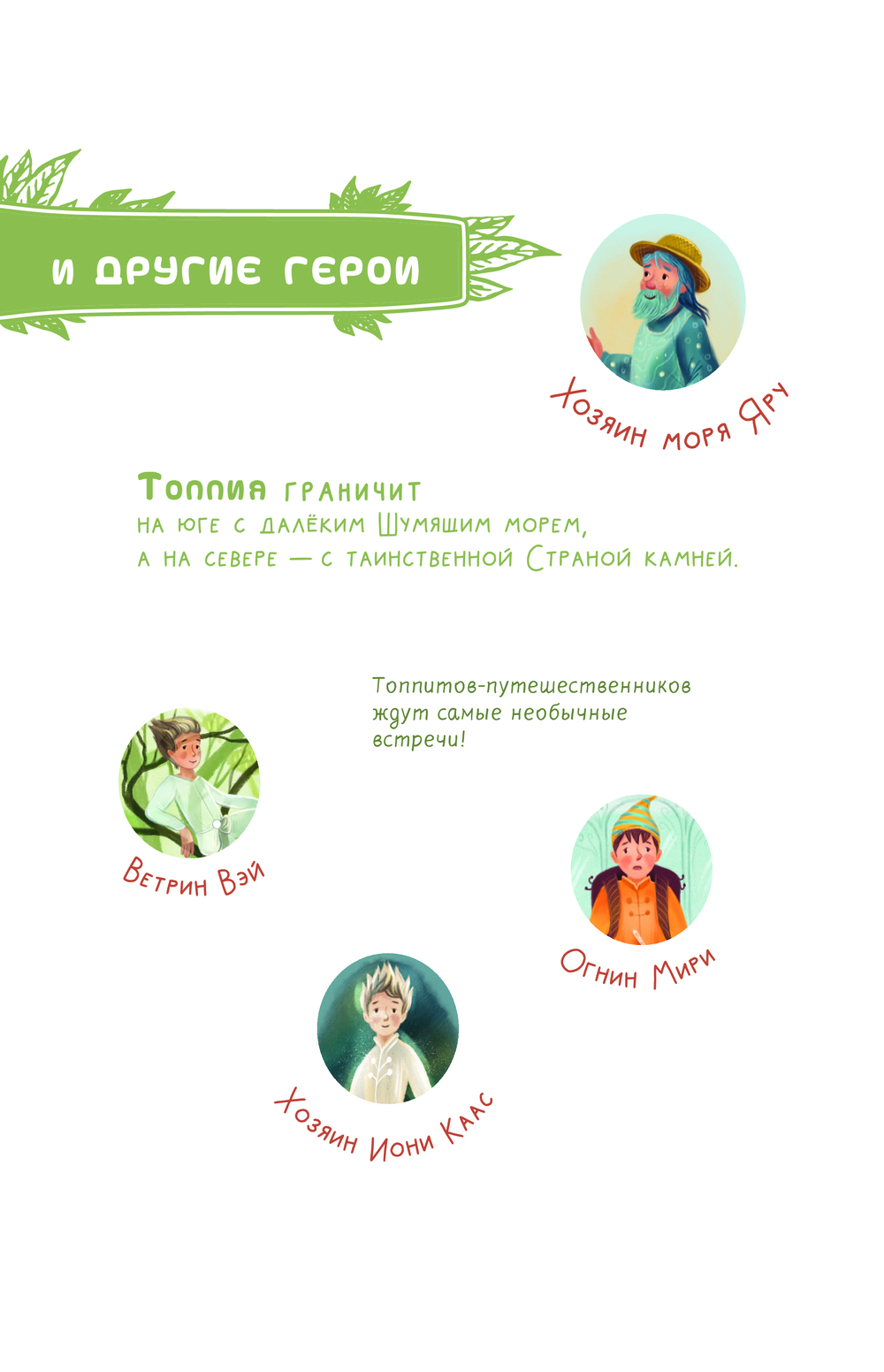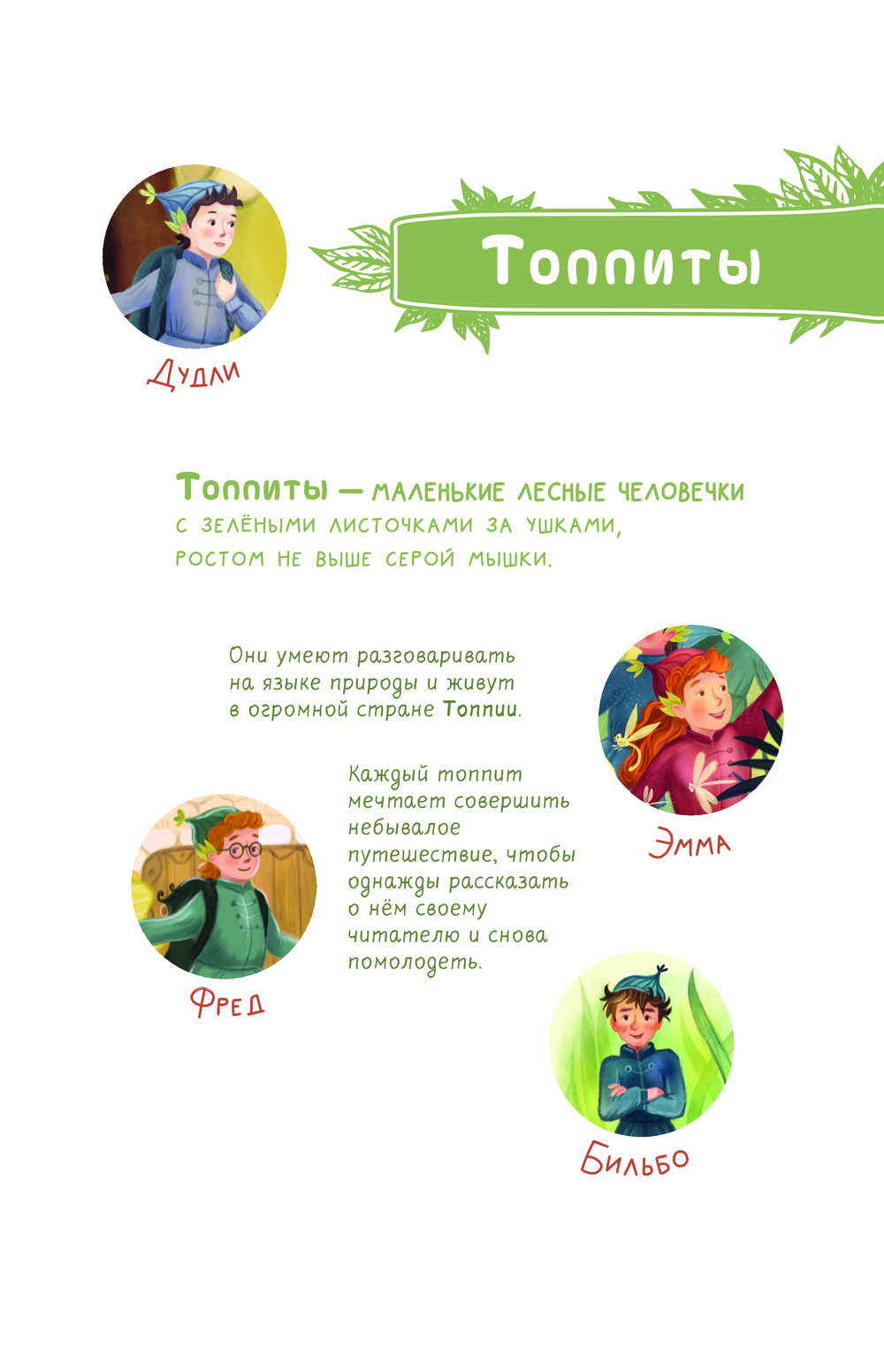 Кто это такие, спросишь ты? Эти малюсенькие существа немного похожи на нас с вами, но за ушками у них листики, ростом они не больше мышки, а ещё они умеют говорить с Природой и просто обожают приключения! И немудрено – ведь когда-нибудь, вспоминая о своих великих путешествиях, они смогут помолодеть и... да-да, снова пуститься в путь.