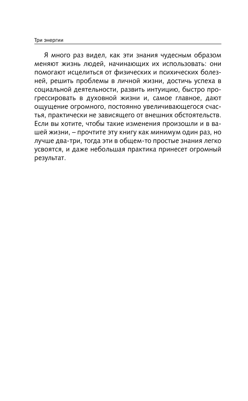 Произведение "Три энергии. Забытые каноны здоровья и гармонии" предназначено для широкого круга читателей. Особенно рекомендуется врачам, психологам, педагогам, лидерам и руководителям всех уровней.