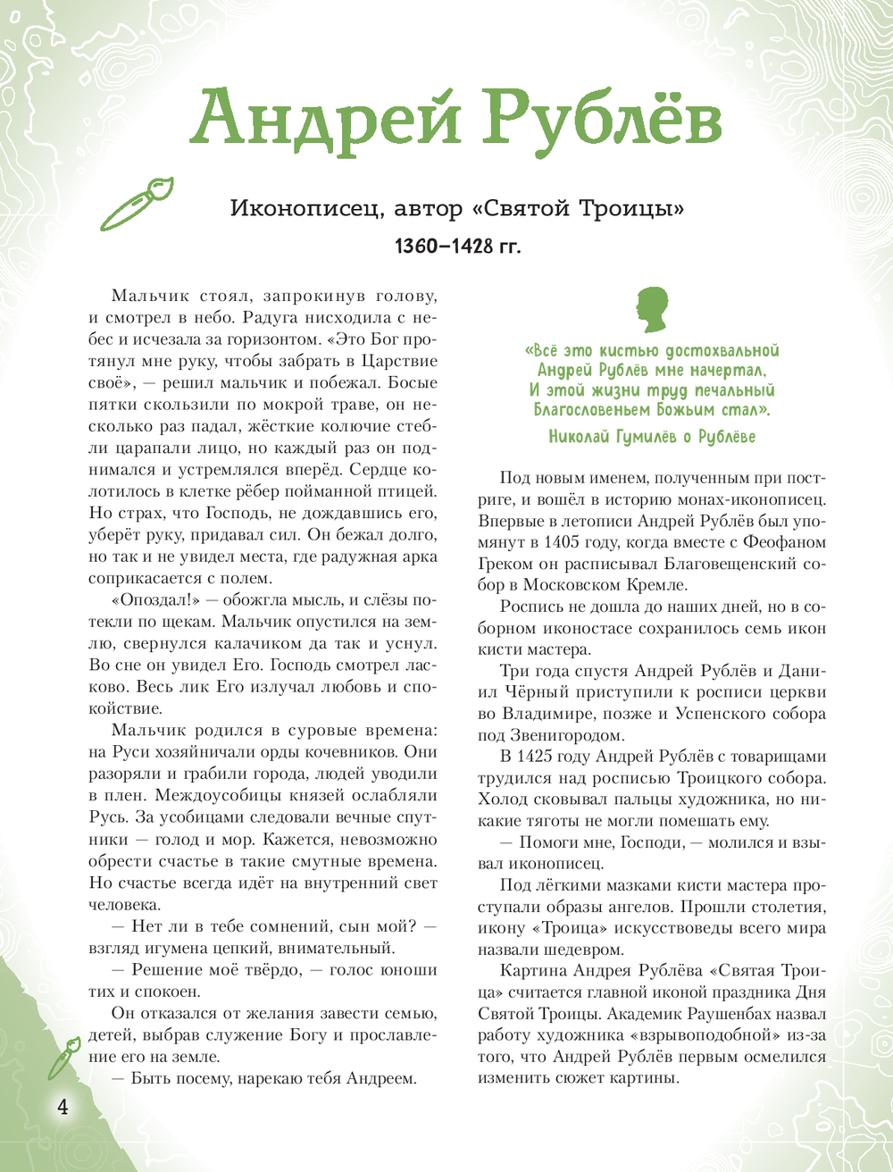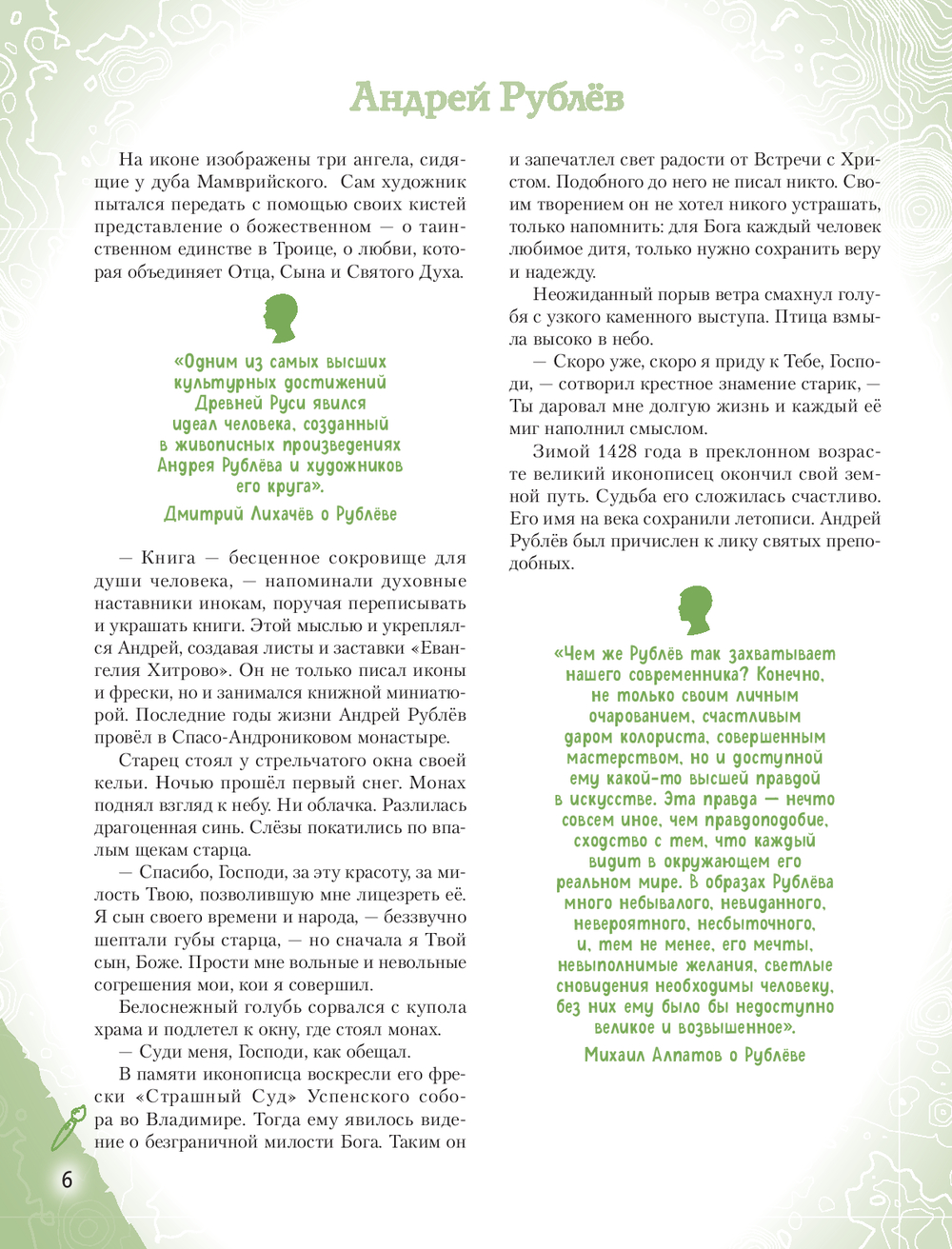 Эта книга патриотической серии "Великие люди великой страны" рассказывает о двадцати наших знаменитых соотечественниках – живописцах, иллюстраторах, портретистах, иконописцах, реставраторах и скульпторах,чьи имена навсегда останутся в истории России.