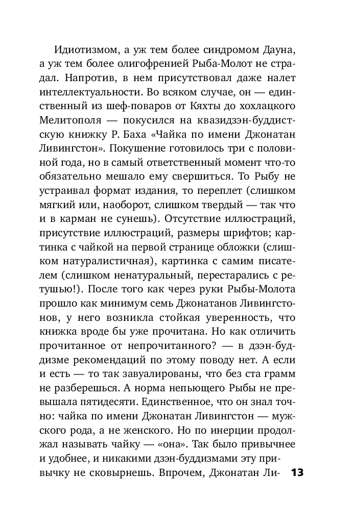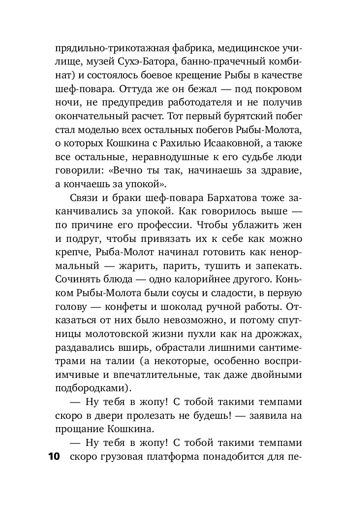 Это прозвище у него такое – Рыба-Молот. Ну какая он рыба? Просто глаза широко расставлены. А так – хороший повар, честный человек, хоть и идиот, как его позже охарактеризовали. Работает у олигарха по фамилии Панибратец, и жизнь его ничем особенным не отличается: от котла – к кастрюле, от кастрюли – к холодильнику...