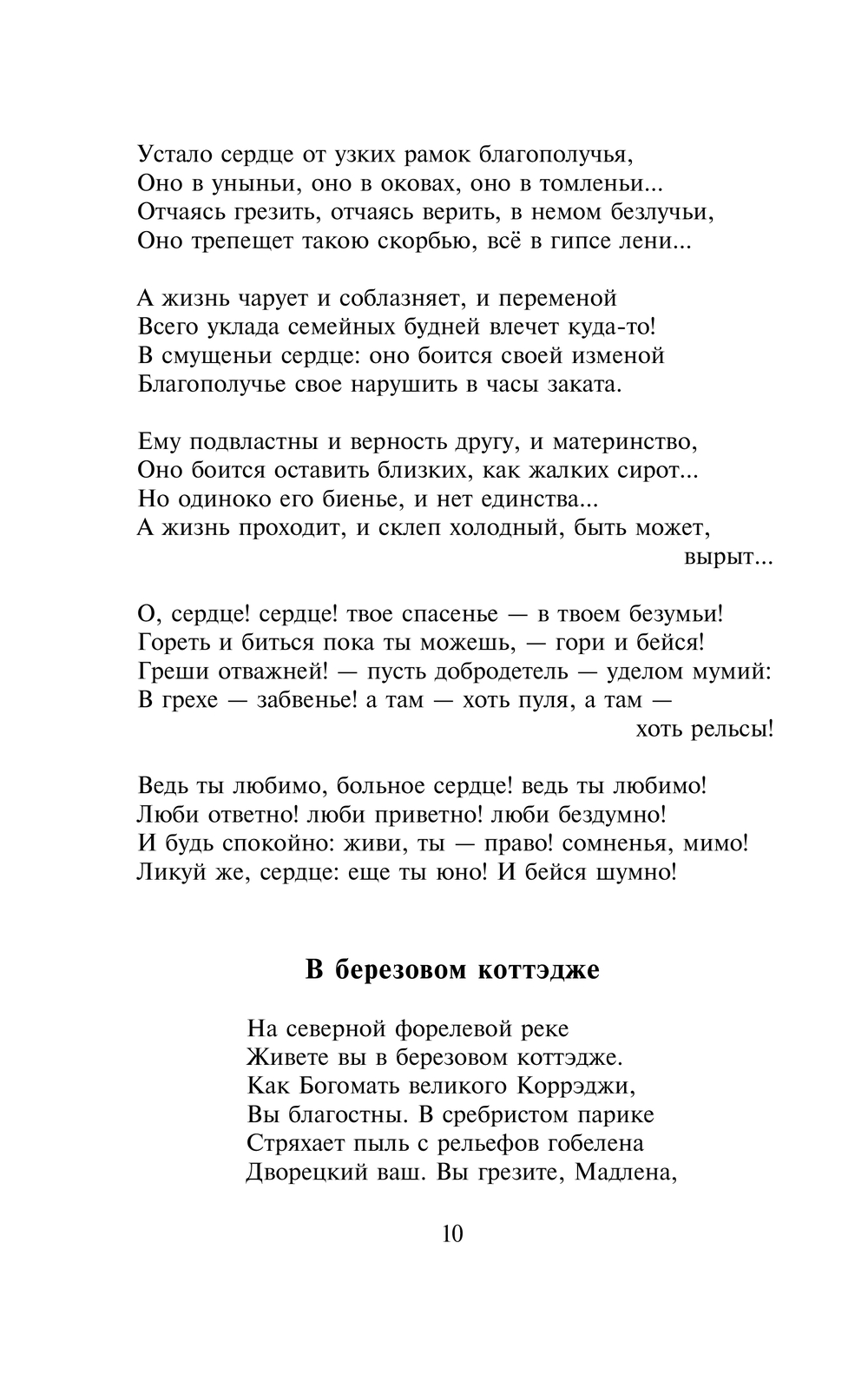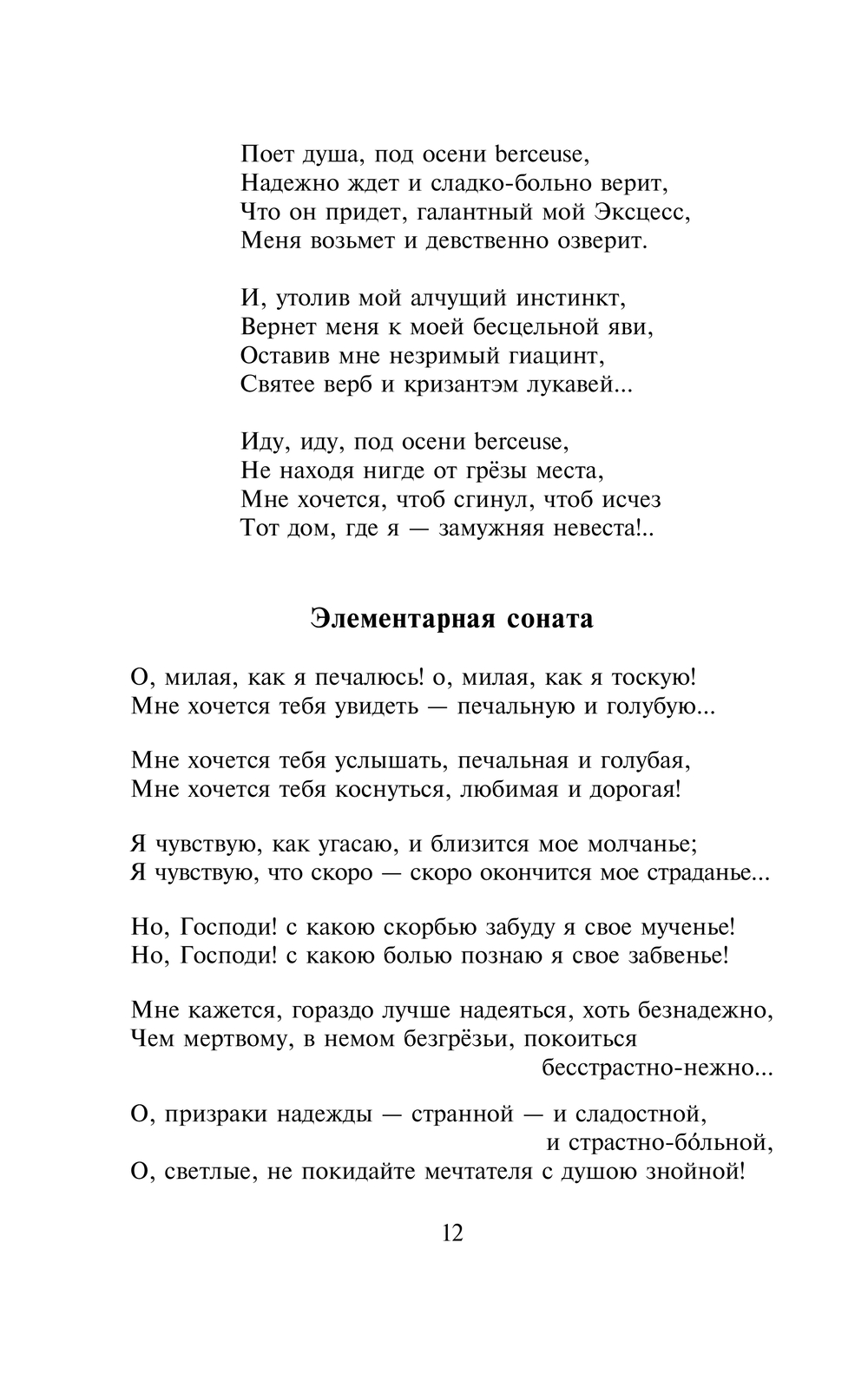 В настоящем издании представлены стихи из четырех поэтических сборников Игоря Северянина – "Громокипящий кубок" (1913), "Ананасы в шампанском" (1915), "Соловей" (1923), "Классические розы" (1931), раскрывающие творческую эволюцию поэта на протяжении 20 лет.