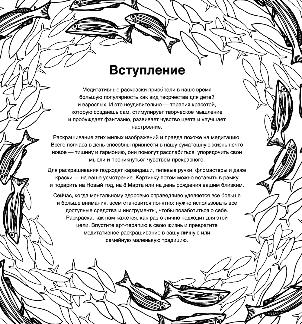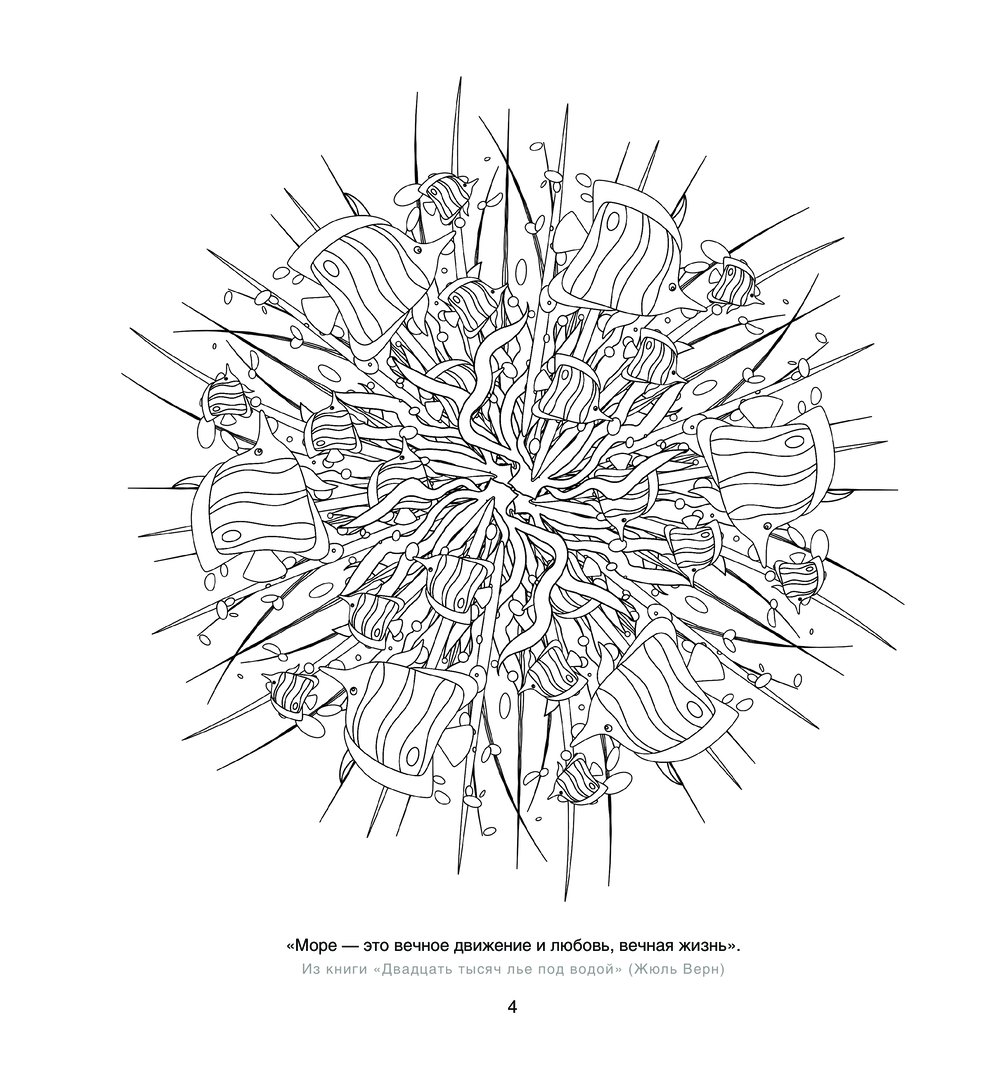 Попробуйте исследовать глубины своего подсознания наравне с глубинами морскими, раскрашивая мандалы, собранные на этих страницах, и настраиваясь на спокойствие и умиротворяющий шум волн. Это необычный, но при этом очень интересный и действенный способ. Как результат – неминуемо придет гармония, убаюкает и утешит.