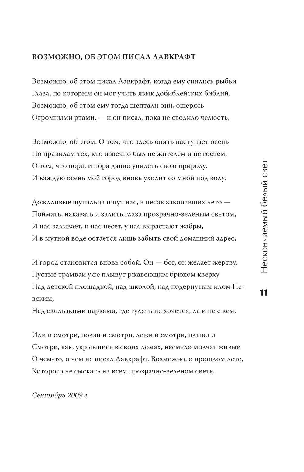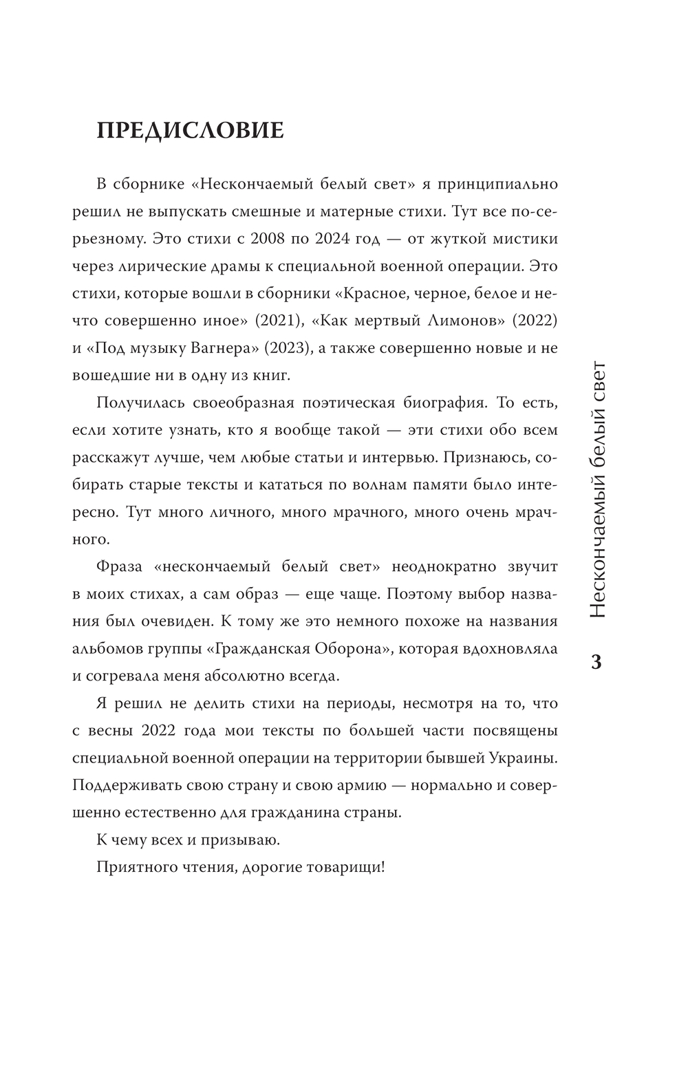 Александр Пелевин – российский писатель, поэт, публицист, один из ярких представителей поэзии периода СВО. Книга "Нескончаемый белый свет" – сборник стихотворений за последние 15 лет, расположенных в хронологическом порядке, своеобразная поэтическая биография.