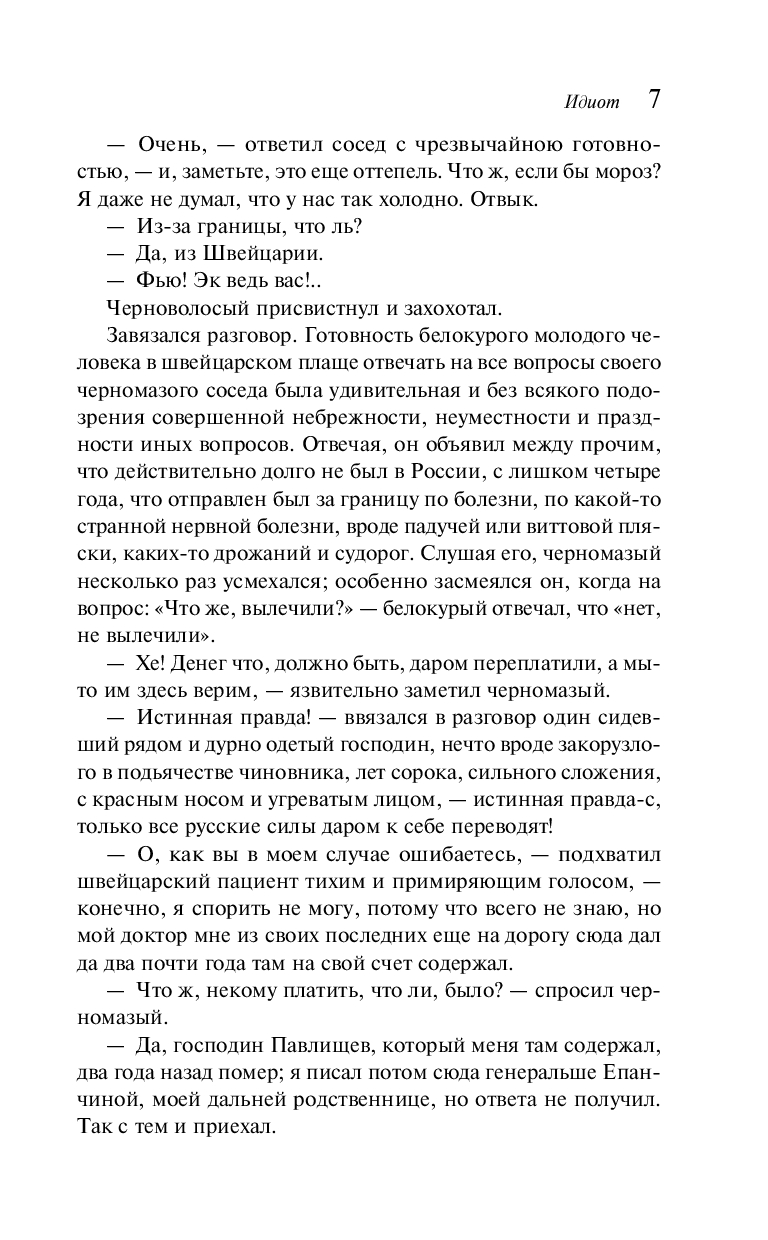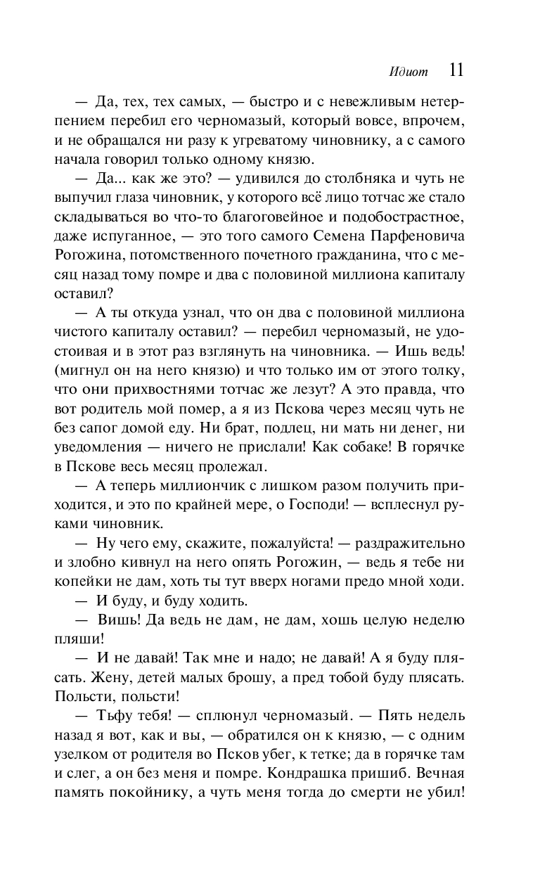 Такие насыщенные сюжеты всегда "обречены" вызывать в читателе автоматический эффект присутствия. Секрет не только и не столько в событийных перипетиях, сколько в великолепно выписанных персонажах и электрических разрядах между ними. Суммой всех слагаемых становится превращение эффекта присутствия в "эффект соучастия": погружаясь в роман, вы становитесь сначала невидимым свидетелем событий, а потом сживаетесь с главным героем так прочно, что смотрите его глазами и меряете его мир биением собственного сердца. И тогда возникает главный вопрос: как выжить в этом мире, который казался вымышленным и вдруг стал таким реальным, и как здесь не сойти с ума. В конце концов, может ли общество определять степень чьей-то "нормальности"? Вообще, кто из нас князь Мышкин?