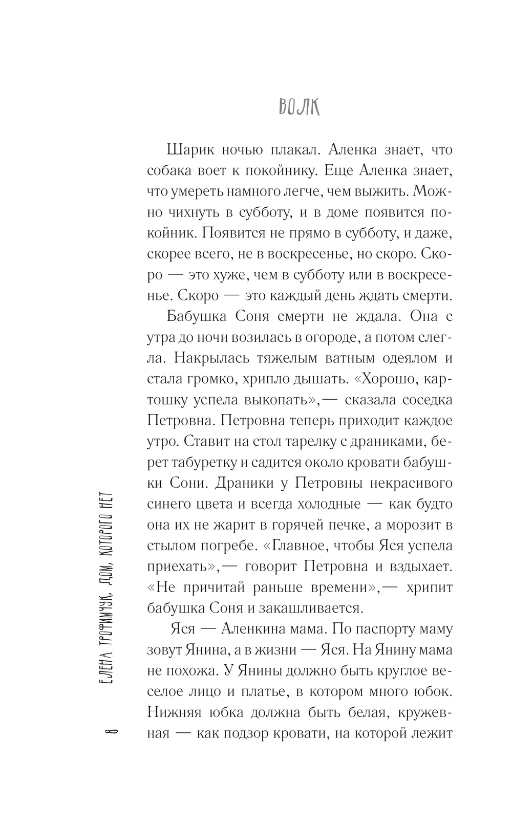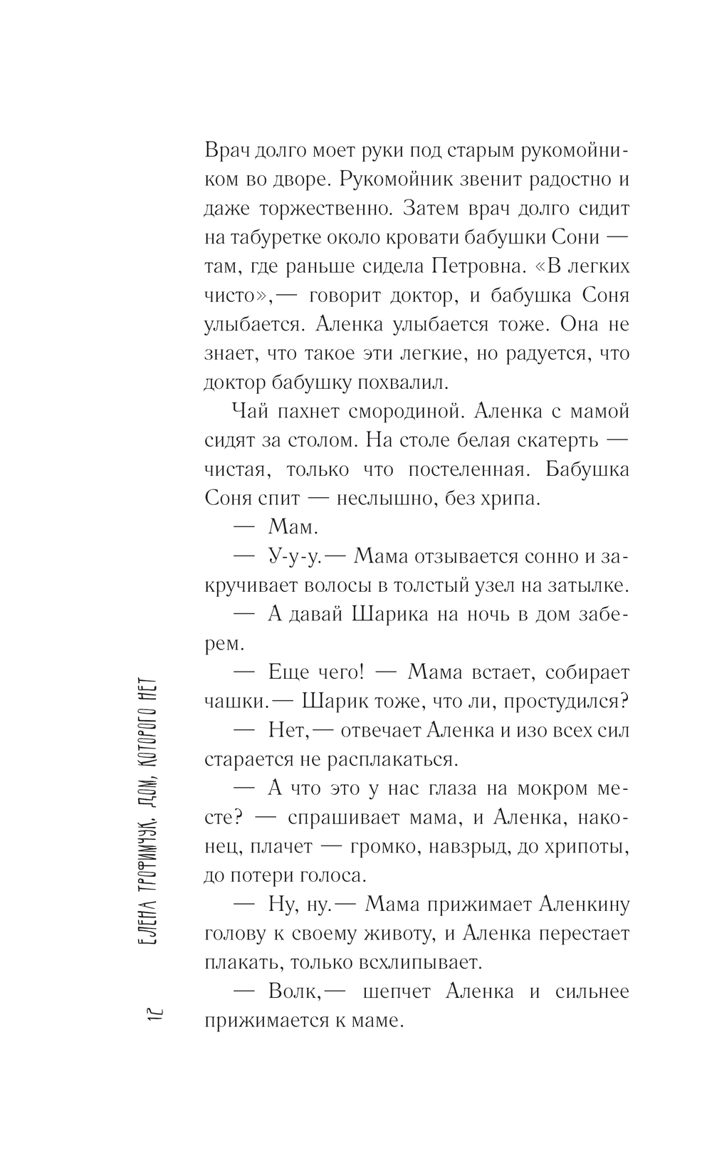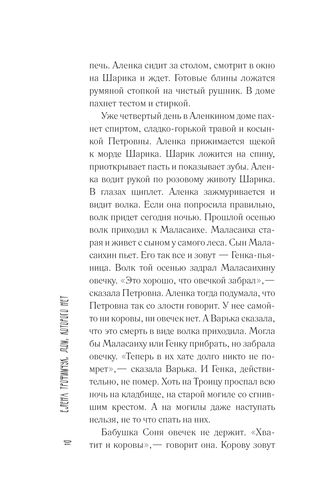 "Дом, которого нет" – это большой мир, который умещается в маленькой деревне. Мы смотрим на него глазами девятилетней Аленки. Здесь есть остановившееся время, в котором жизнь наряжается смертью, смерть – жизнью, и каждый момент настоящий.