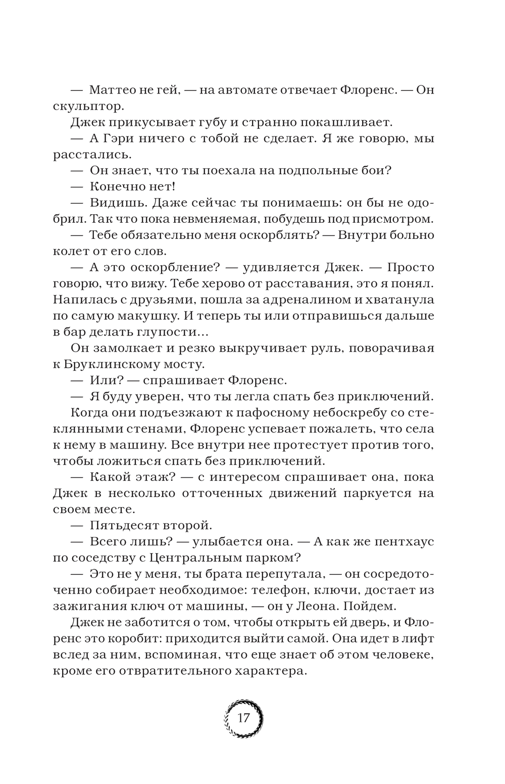 После того как Джек вытаскивает разбитую расставанием Флоренс с арены, где собрались отбросы города, он не планирует больше с ней видеться. Почему тогда он не может забыть эти грустные темные глаза и снова едет в Бруклин проверить, не встряла ли она в очередную историю?