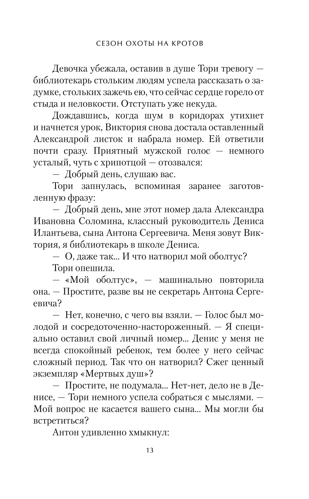 Жизнь предпринимателя Антона Илантьева складывается не по плану. Вдовец с сыном-подростком, он вынужден вернуться в родной город, где знакомится с Викторией, не в меру инициативным школьным библиотекарем. Их отношения становятся предметом пересудов и обостряют проблемы Антона с сыном. А потом все и вовсе идет под откос: сына похищают. Перебирая факты из своего прошлого, Антон пытается понять, кто мог подобраться к нему так близко, чтобы ударить по единственно важному, что еще осталось в его жизни.