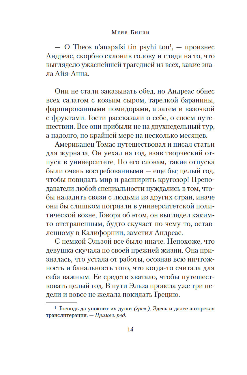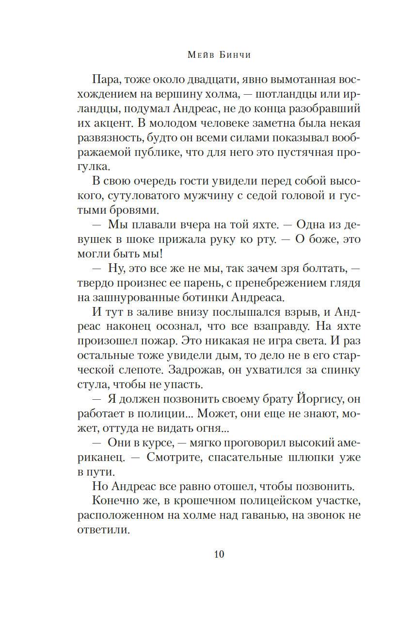 На маленьком греческом острове, вдали от популярных туристических маршрутов, царит безмятежное лето. В таверне на высоком холме собирается небольшая компания молодых людей, которые едва знакомы друг с другом, – кто-то приехал из Штатов, кто-то из Европы. В отличие от обычных отпускников, эти путешественники хотят остаться в Греции на продолжительное время, и у каждого есть на то свои причины. Внезапно на глазах у посетителей таверны в заливе вспыхивает прогулочная яхта. Спасти из огня удается не всех... Оторопевшие свидетели трагедии даже не предполагают, что это событие навсегда изменит их жизнь...