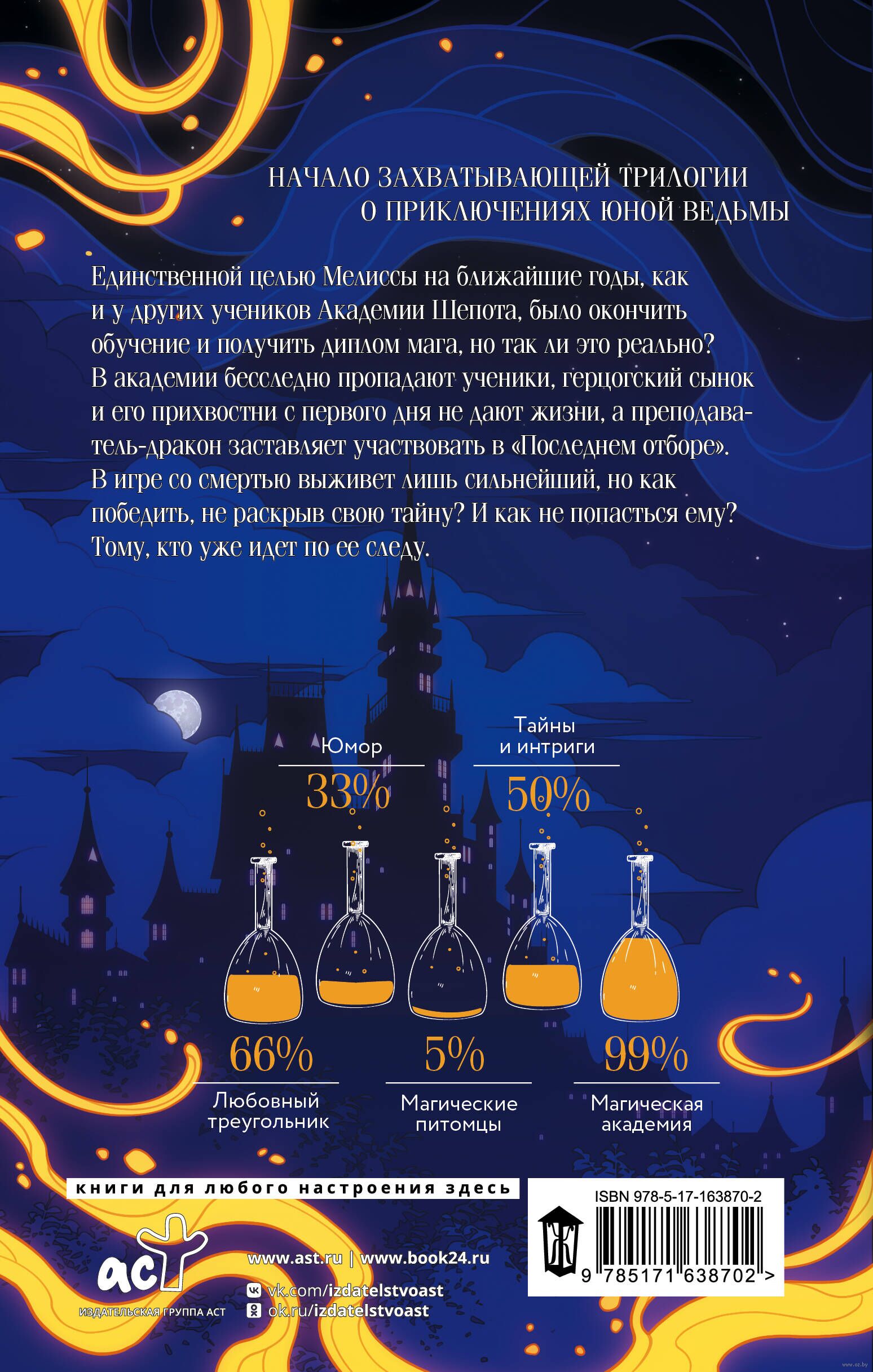 Единственной целью Мелиссы на ближайшие годы, как и у других учеников Академии Шепота, было окончить обучение и получить диплом мага, но так ли это реально? В академии бесследно пропадают ученики, герцогский сынок и его прихвостни с первого дня не дают жизни, а преподаватель-дракон заставляет участвовать в "Последнем отборе". В игре со смертью выживет лишь сильнейший, но как победить, не раскрыв свою тайну? И как не попасться ему? Тому, кто уже идет по ее следу.
