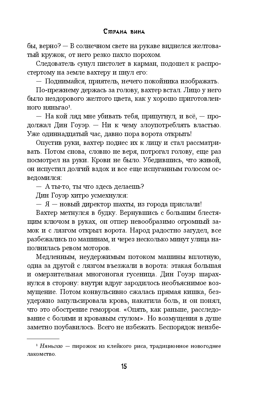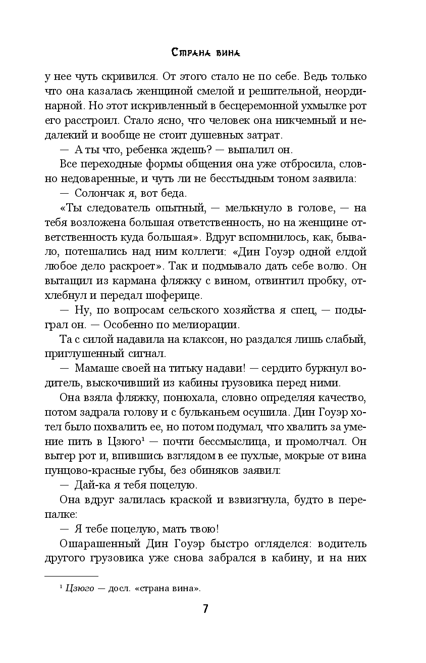 Уже давно ходят жуткие слухи, что в провинции Цзюго (что буквально означает "Страна вина") творится неслыханное – поедают детей. На следователя по особо важным делам провинциальной прокуратуры Дин Гоуэра была возложена ответственная миссия – докопаться до правды. В честь приезда следователя в провинции закатывают грандиозный пир, который станет началом того тяжелого алкогольного ступора, который опустится, кажется, на весь окружающий мир.