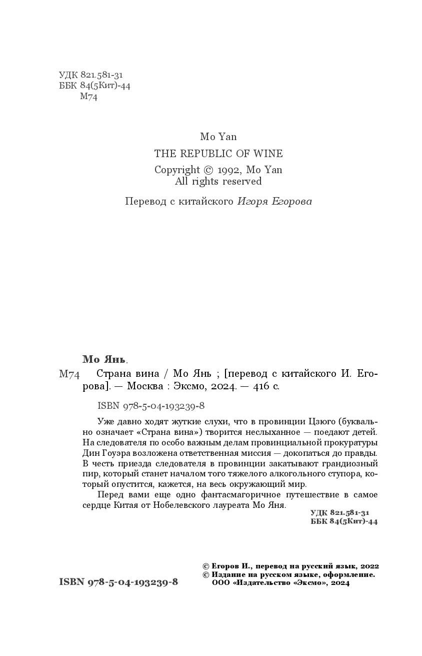 | Серия | Loft. Лучшие произведения Мо Яня |