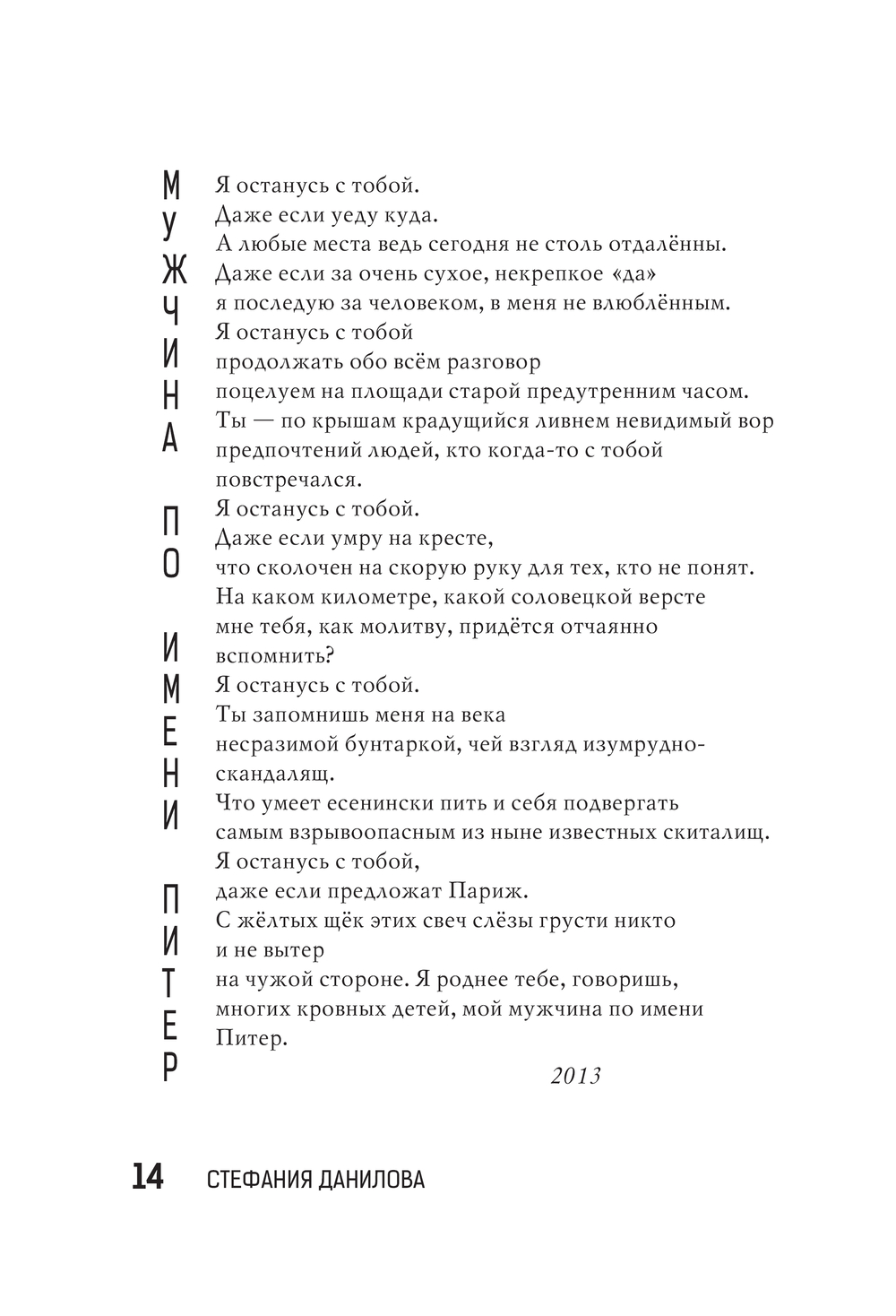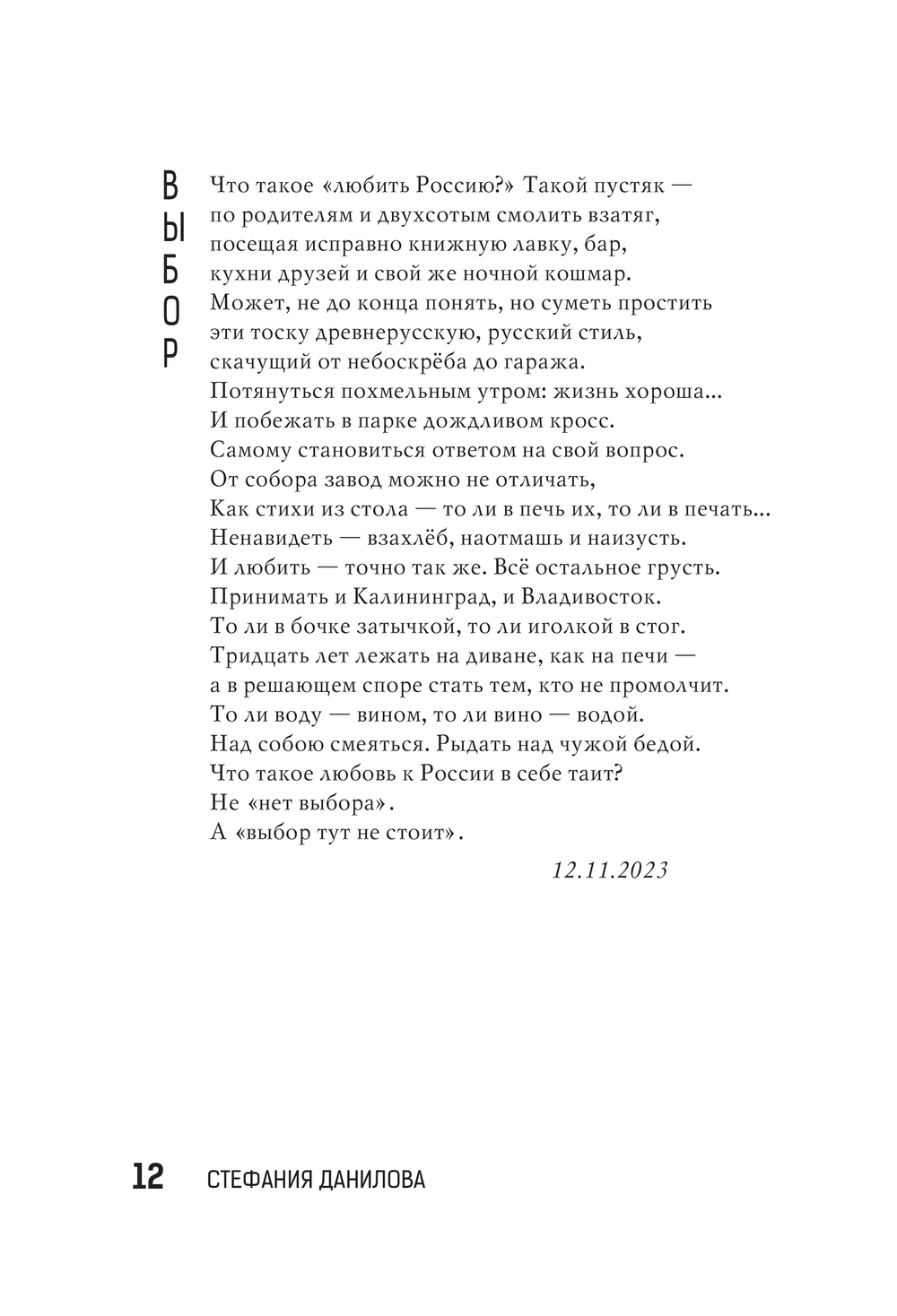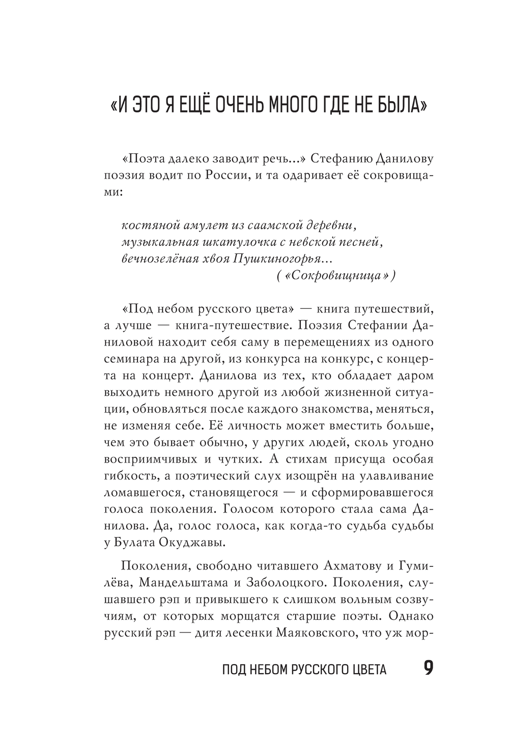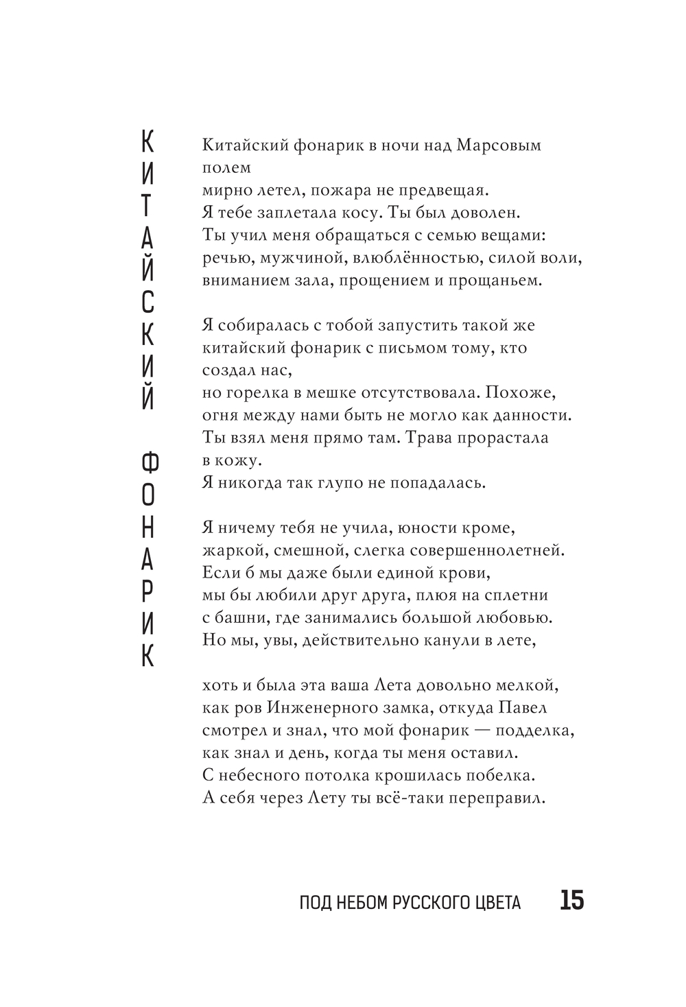 Эта книга – об искусстве любить Россию и принимать её любовь. О том, как слова "широка страна моя родная" приобретают объём, когда жмёшь ветвь и карельской сосне, и сочинской пальме, словно руки друзьям. Махачкалинские облака-аксакалы, тверской жасмин у Дома Поэзии, аршинцевские заброшенные пляжи, выборгские поющие ангелы на крышах, оренбургские факелы газоперерабатывающего завода – то ли герои книги, то ли её соавторы. Истории, которые захотели быть услышанными, проступили сквозь кирпич и брусчатку, асфальт и горячую землю, старинные вывески и неоновые огни.
