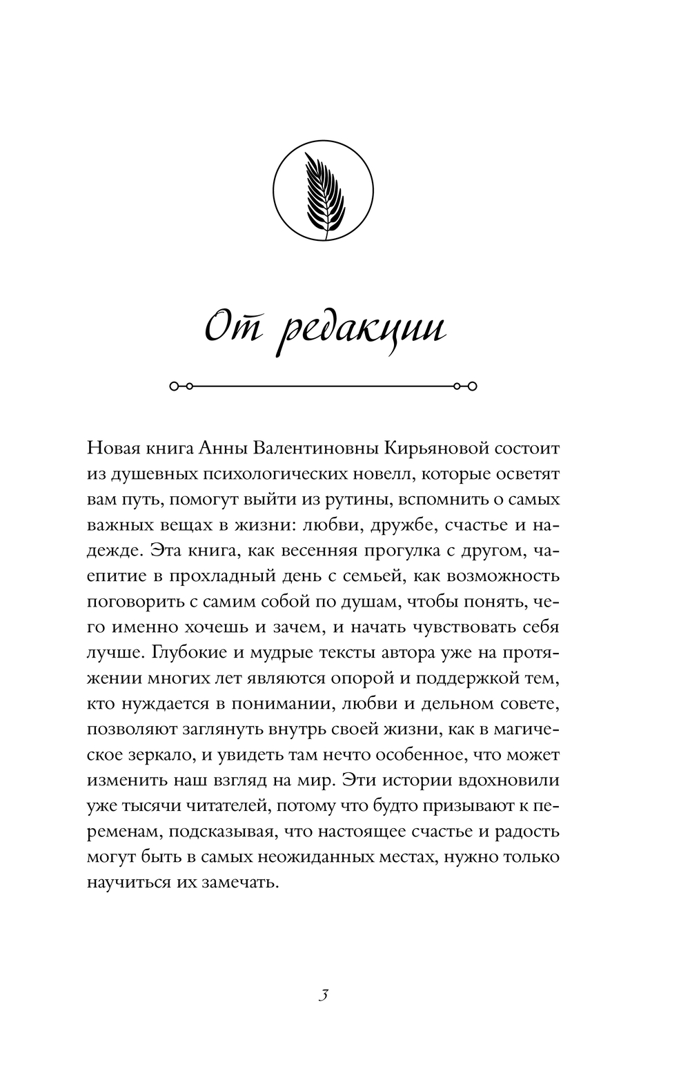Вашим волшебным светлячком станет эта книга! В ней мудрые новеллы философа, автора множества книг Анны Кирьяновой. Они как волшебное зеркало, в котором вы узнаете себя самих, взглянете на жизнь со стороны и поймете, чего именно хотите. Они как глоток свежего воздуха, который вдохновил уже тысячи людей и заставил посмотреть на мир другими глазами. Они как маяк в бушующем океане наших чувств: поддерживают в трудные минуты и освещают путь.