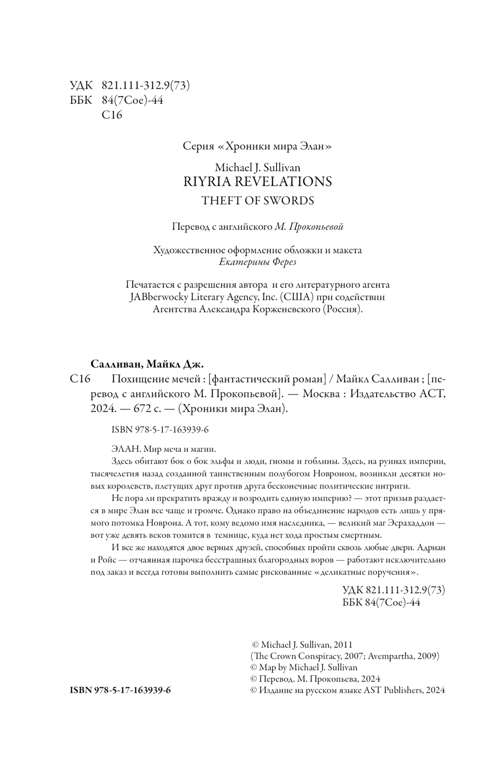 Здесь обитают бок о бок эльфы и люди, гномы и гоблины. Здесь, на руинах империи, тысячелетия назад созданной таинственным полубогом Новроном, возникли десятки новых королевств, плетущих друг против друга бесконечные политические интриги. Не пора ли прекратить вражду и возродить единую империю? – этот призыв раздается в мире Элан все чаще и громче. Однако право на объединение народов есть лишь у прямого потомка Новрона. А тот, кому ведомо имя наследника, – великий маг Эсрахаддон – вот уже девять веков томится в темнице, куда нет хода простым смертным. И все же находятся двое верных друзей, способных пройти сквозь любые двери. Адриан и Ройс – отчаянная парочка бесстрашных благородных воров – работают исключительно под заказ и всегда готовы выполнить самые рискованные "деликатные поручения".