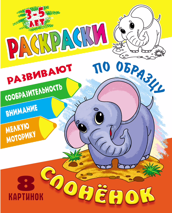 Слонёнок. Раскраски по образцу