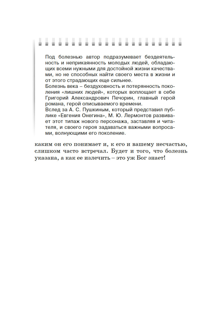 "Герой нашего времени" – первый русский психологический роман, раскрывающий внутренний мир "лишнего человека". В этой книге вы найдёте не только полный текст произведения, но и вступительную статью, комментарии аспиранта Литературного института имени А. М. Горького, которые помогут вам подготовиться к экзаменам.