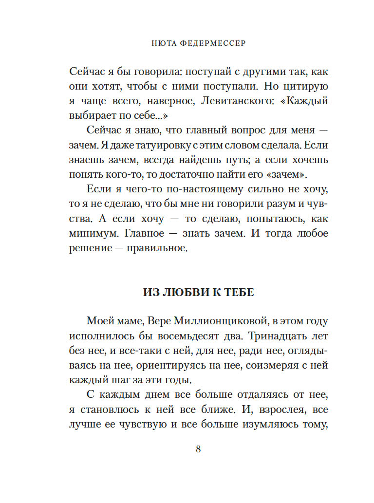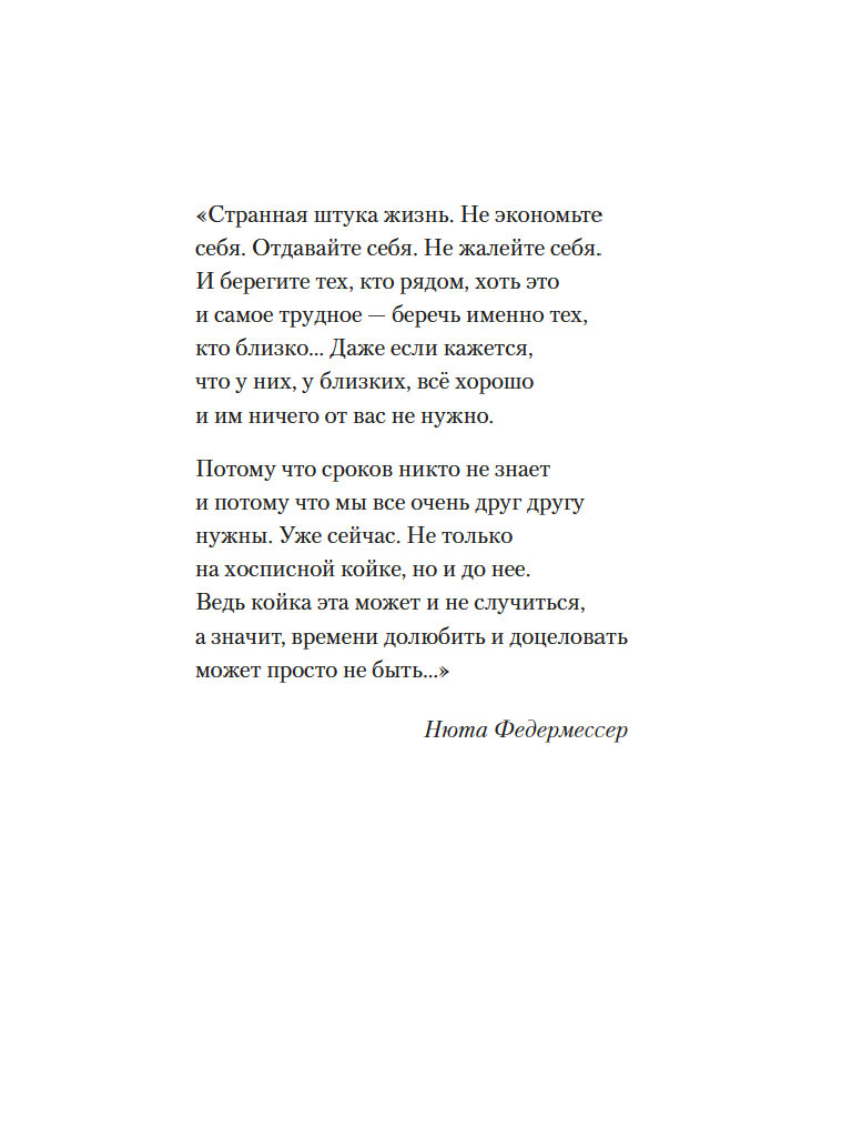 Нюта Федермессер – известный российский общественный деятель, учредитель Благотворительного фонда помощи хосписам "Вера", названного в честь ее мамы, врача Веры Васильевны Миллионщиковой, одной из основателей хосписного движения в России.