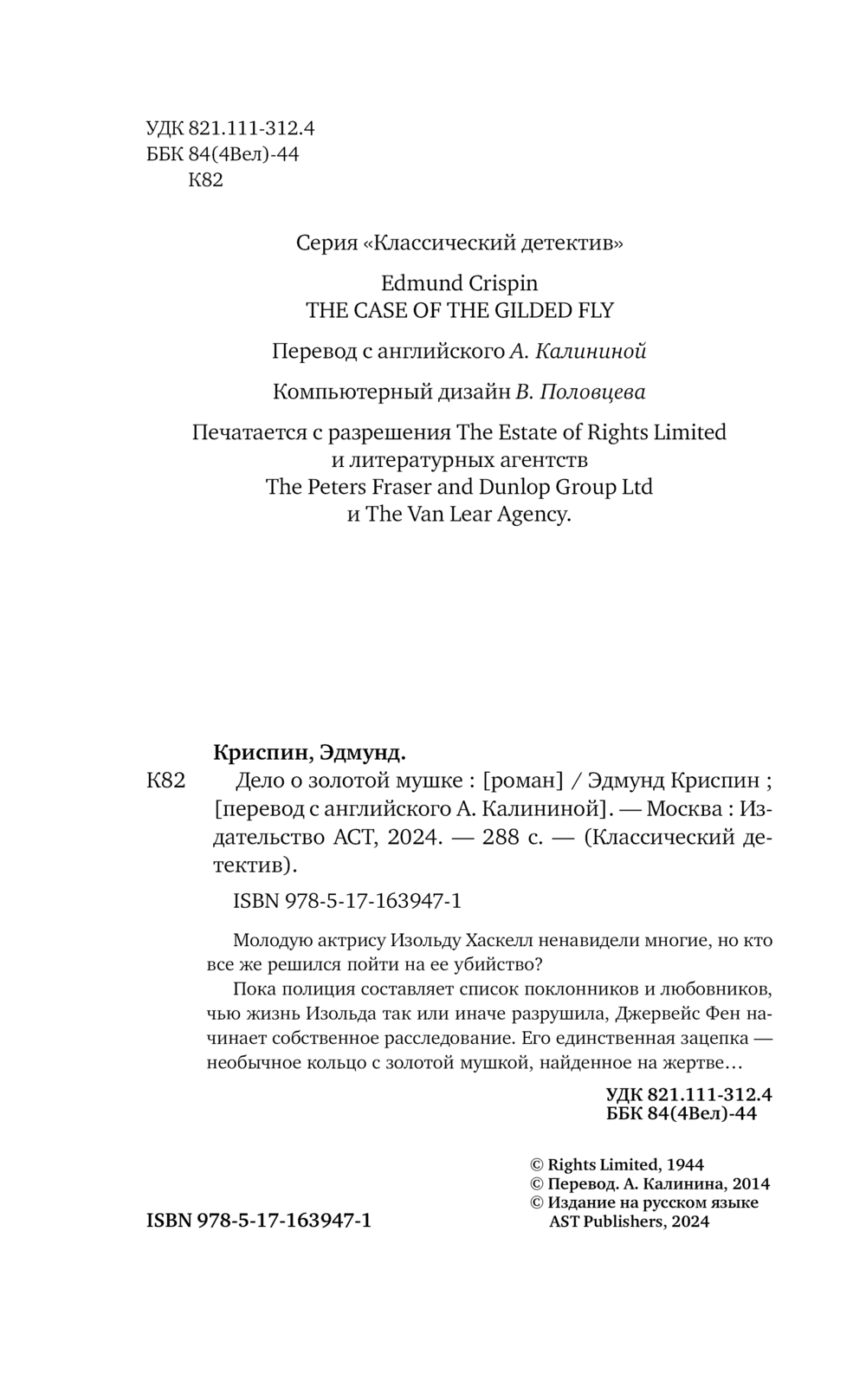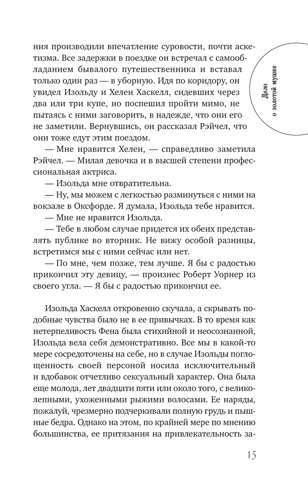 Пока полиция составляет список поклонников и любовников, чью жизнь Изольда так или иначе разрушила, Джервейс Фен начинает собственное расследование. Его единственная зацепка – необычное кольцо с золотой мушкой, найденное на жертве...