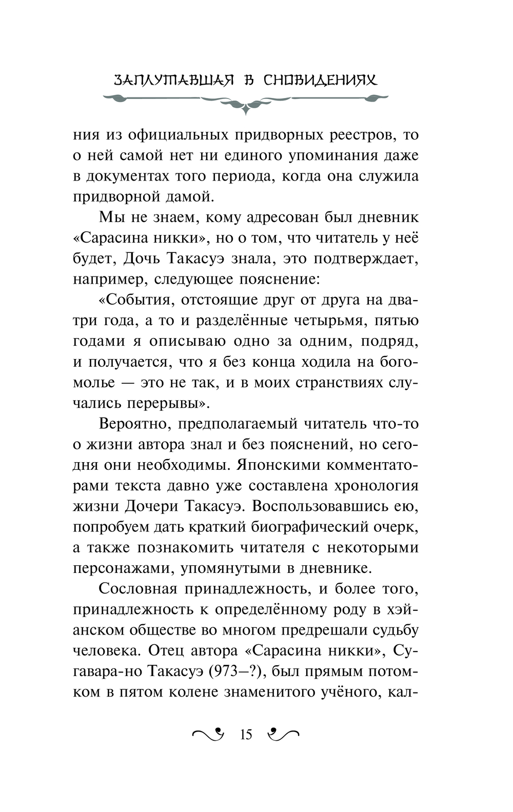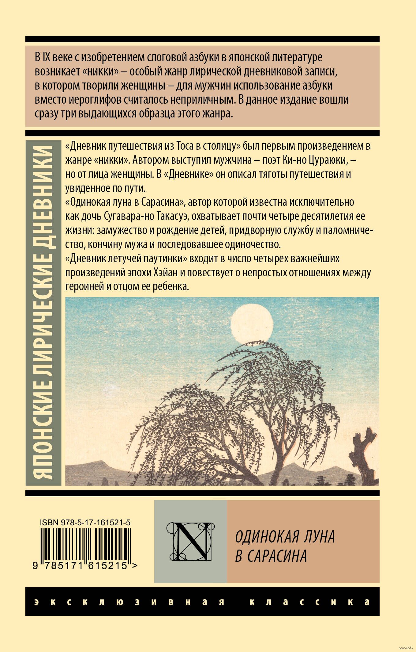 "Одинокая луна в Сарасина", автор которой известна исключительно как дочь Сугавара-но Такасуэ, охватывает почти четыре десятилетия ее жизни: замужество и рождение детей, придворную службу и паломничество, кончину мужа и последовавшее одиночество.