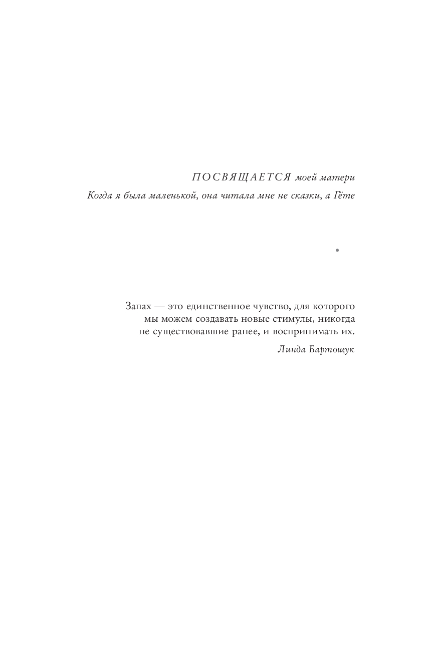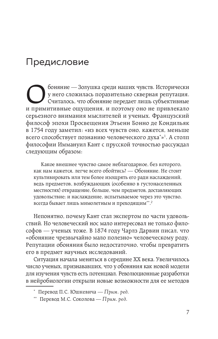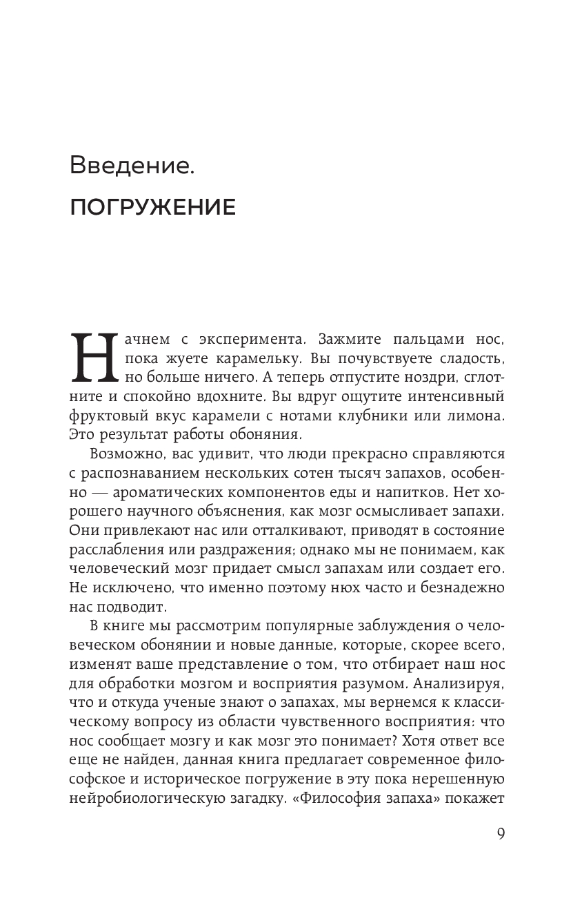 Автор рассказывает о том, как изучают биологическую механику и "значения" запахов, а еще – об интересных разработках в сфере нейробиологии, молекулярной биологии, генетики, химии и любопытных экспериментах в парфюмерии и виноделии.
